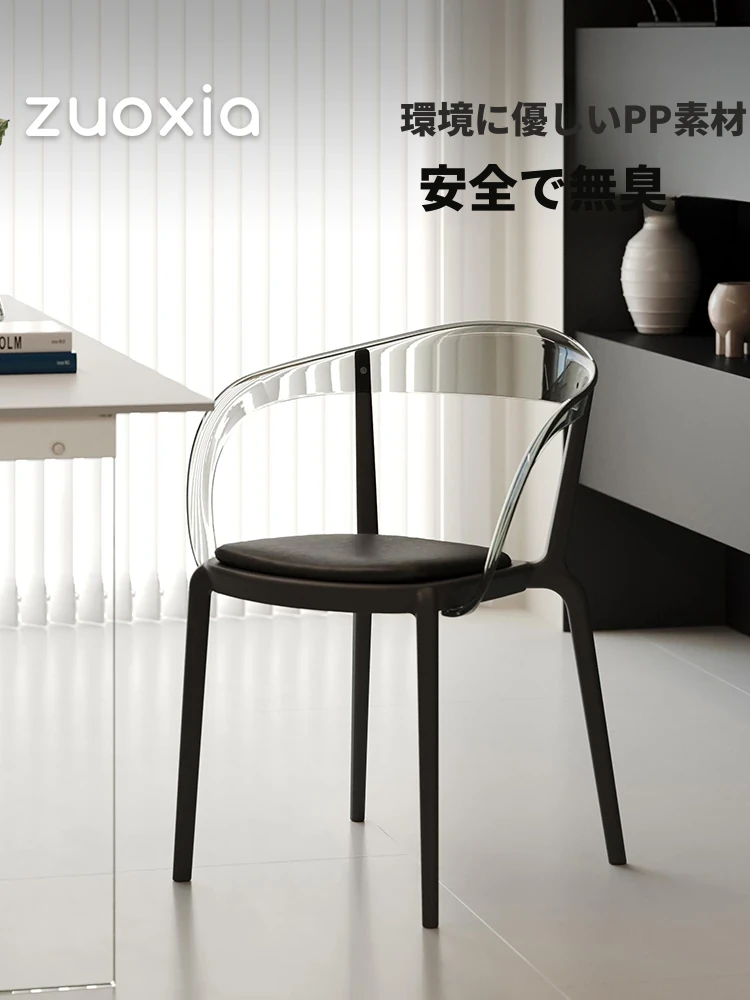 左下沁光ダイニングチェア|北欧風シンプルデザイン|家庭用透明バックレスト付き|小スペースにも最適なスタイリッシュなアームチェア
