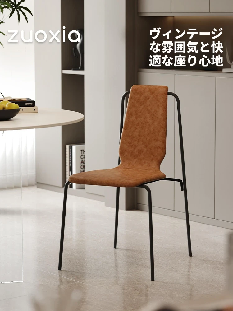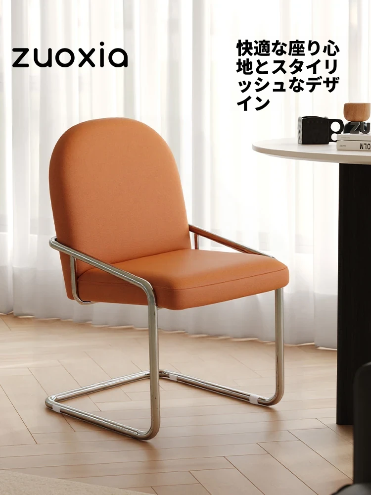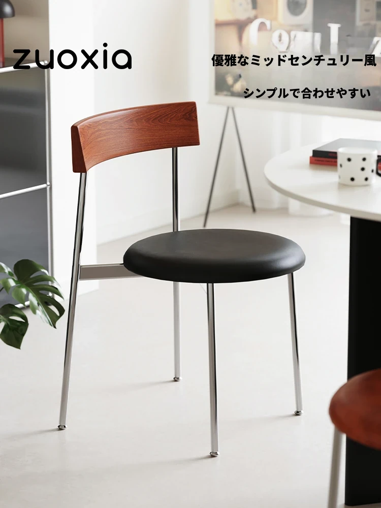 北欧風デザインのサドルレザー食卓椅子 - 現代的なミニマリズムを追求した、丈夫なステンレス製の背もたれ付きダイニングチェア。おしゃれなインテリアにぴったりの一品!