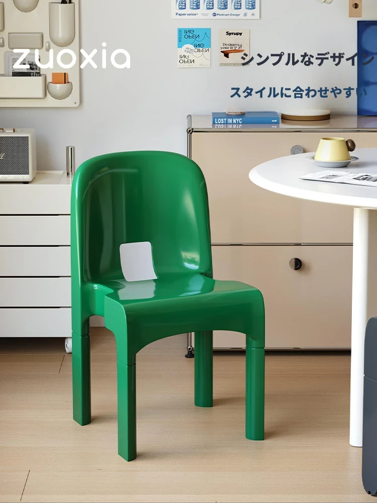 北欧スタイルの左下モスのダイニングチェア - シンプルでモダンなデザイン、小スペースにもぴったり!リラックスできるプラスチック製、カフェや家庭に最適な食卓用スツール。