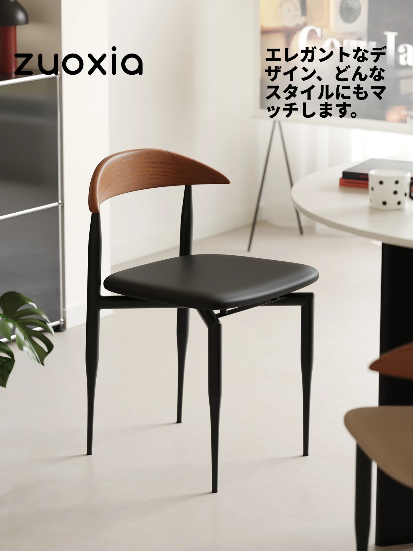 2025年新款!北欧极简风格の左下ランダダイニングチェア。背もたれ付きで、快適な座り心地を実現。高品質の無垢材を使用した、書斎やリビングにぴったりのソフトパッケージ椅子。アイランドテーブルやティーテーブルにも最適!