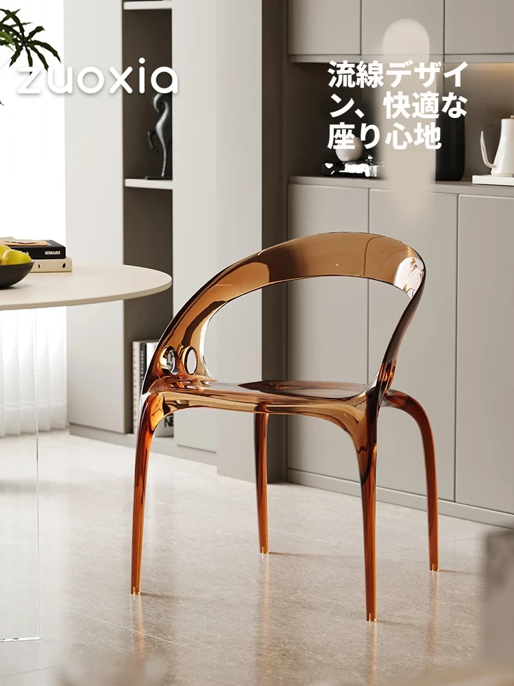 2025新作!左下琉璃椅 - シンプルでスタイリッシュな厚手プラスチックダイニングチェア。ラグジュアリーなアクリルアームレスト付き、快適な背もたれで、家のインテリアを格上げ!