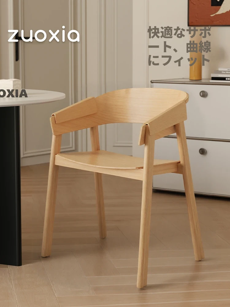 北欧スタイルのシンプルな木製ダイニングチェア - 創造的なアームレスト付き、快適な背もたれで、家庭やカフェ、ティーショップにぴったりの一品!