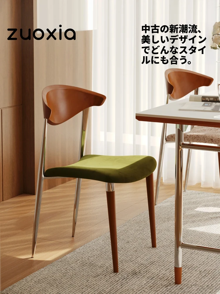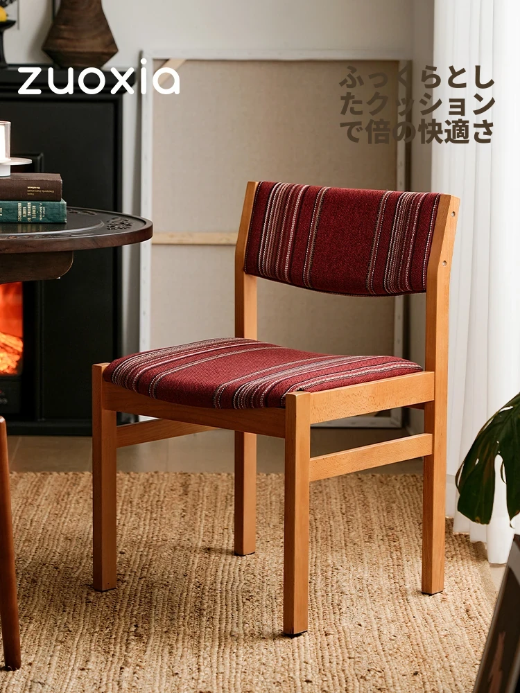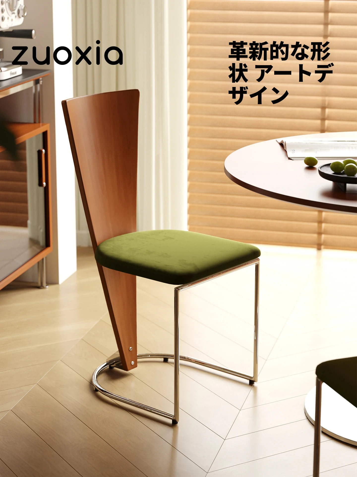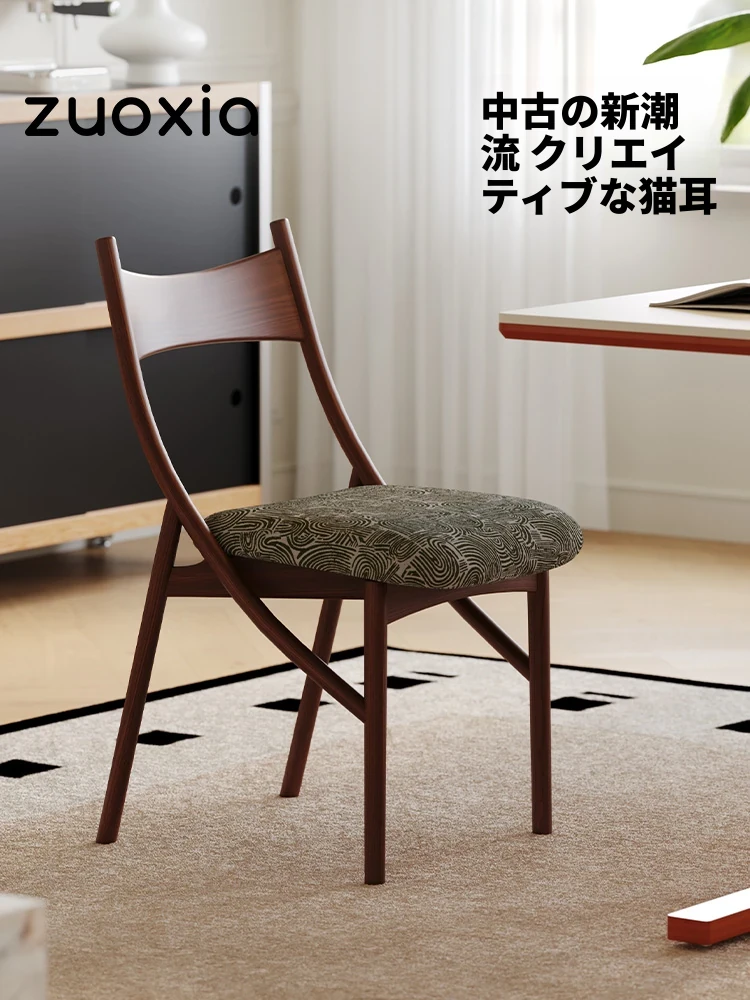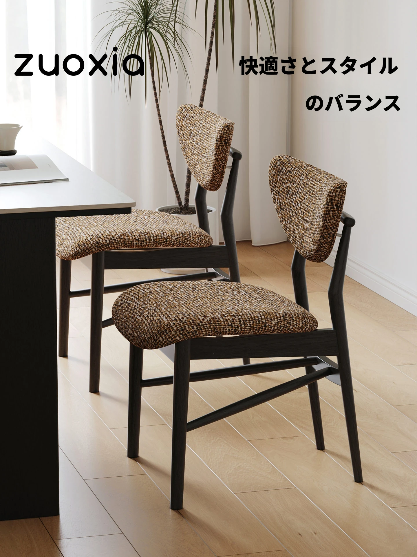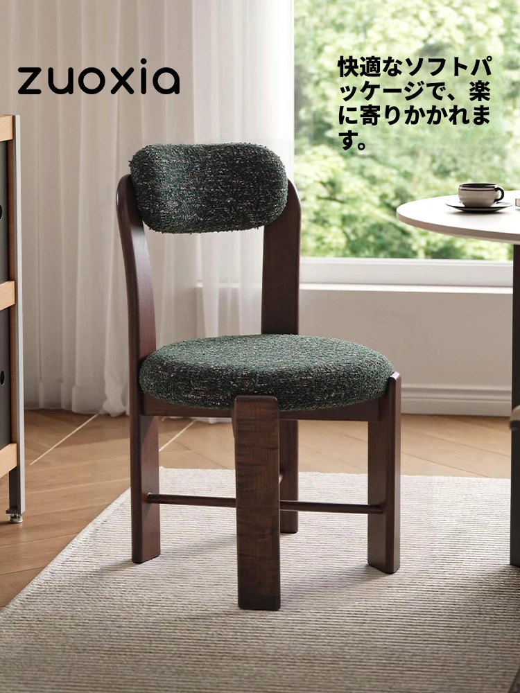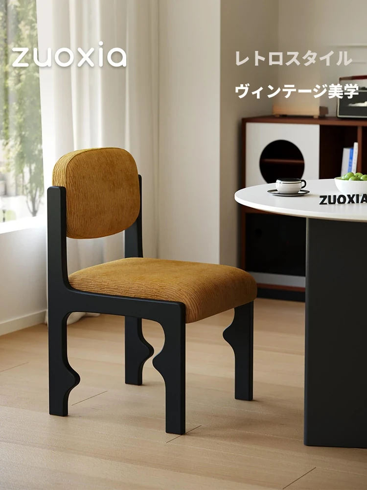 レトロなデザインの左下布製ダイニングチェア - 高品質の無垢材を使用したおしゃれな背もたれ付きのリラックスチェア。モダンでシンプルなスタイルで、家庭の食卓にぴったり!新しいインテリアのアクセントにどうぞ。