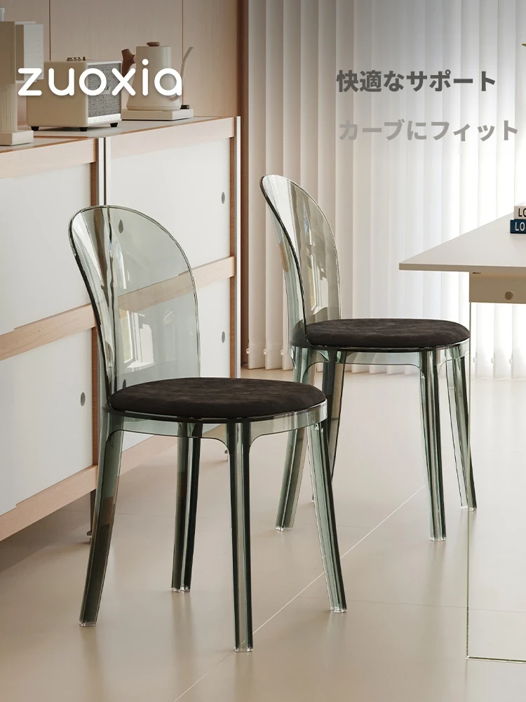 左下ムラーノチェア 商用ダイニングチェア ミルクティー店に最適なアクリル椅子 2025年新作 カフェスタイル リラックス背もたれチェア