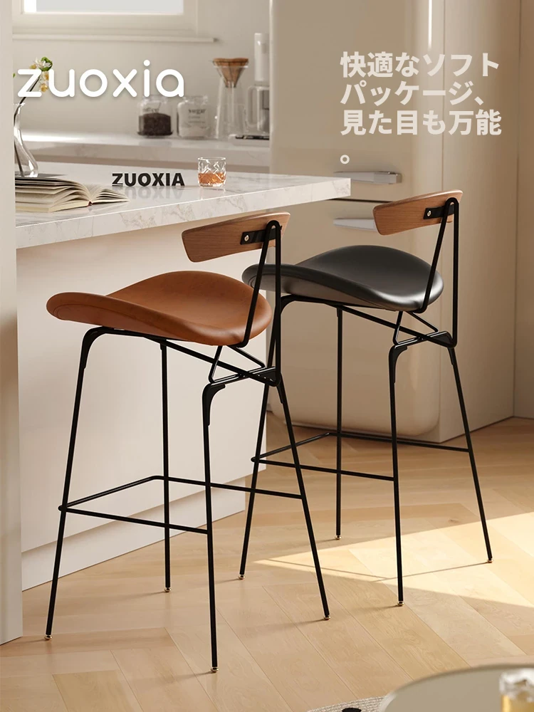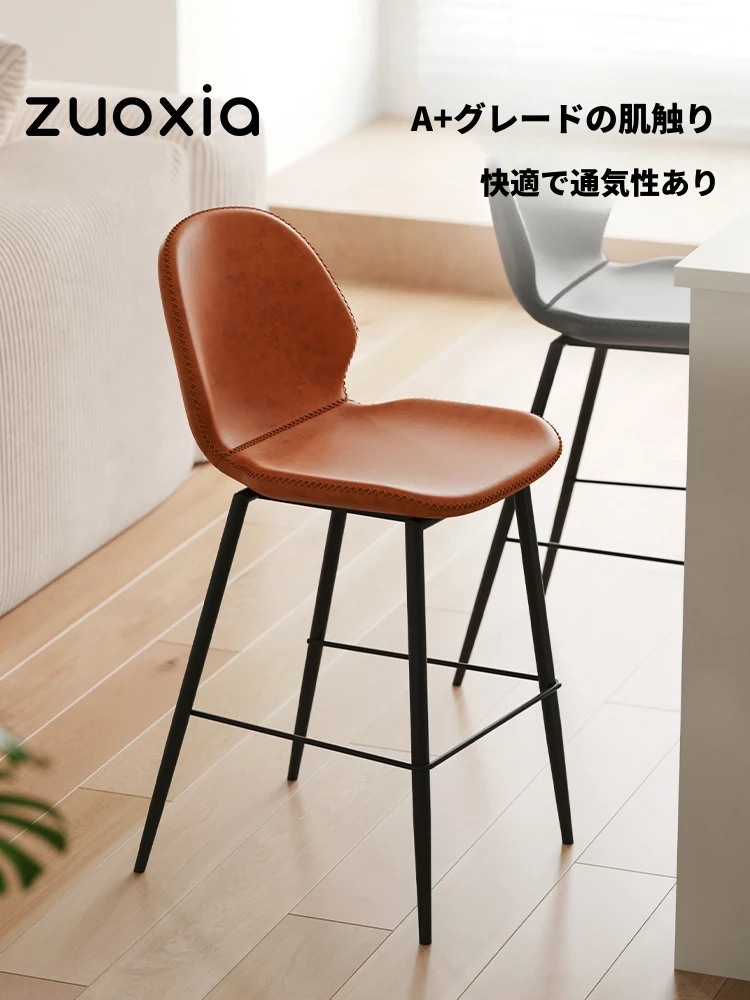 左下ケントバーチェア|モダンミニマリストデザインの高脚椅子|家庭用アイランドテーブル・ダイニングチェア|軽やかなラグジュアリー感のある背もたれ付き|バーやフロントに最適!