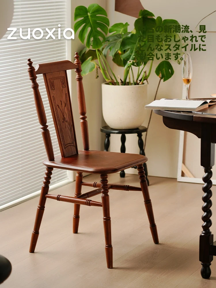 ヴィンテージ風の左下騎士椅子 - 2025年新作!高級感あふれる実木製のダイニングチェア。家庭用にもピッタリなレトロなデザインで、あなたの食卓を華やかに彩ります。