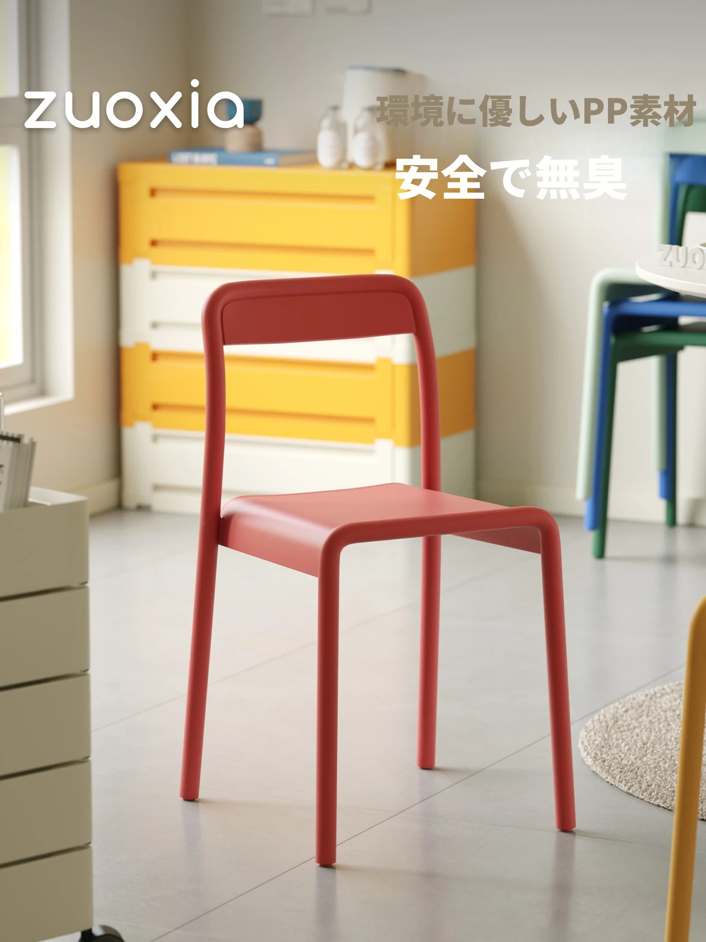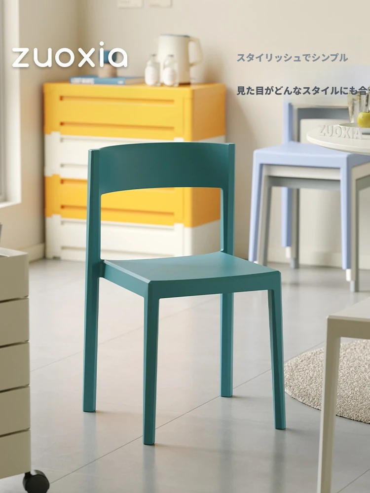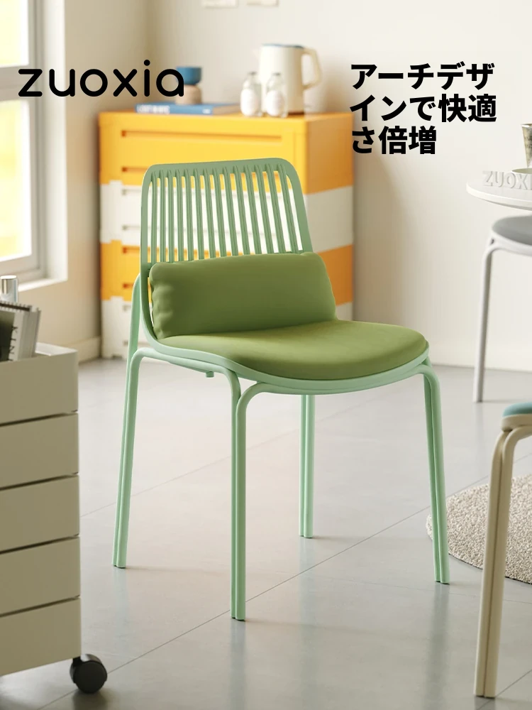 左下キュートドリームチェア - 家庭向け小型スペースに最適な背もたれ付きダイニングチェア。多様な用途に対応し、ドーパミンを感じるデザイン。ティーショップにもピッタリ!スタッキング可能で、シンプルな会話用チェアとしてもお使いいただけます。