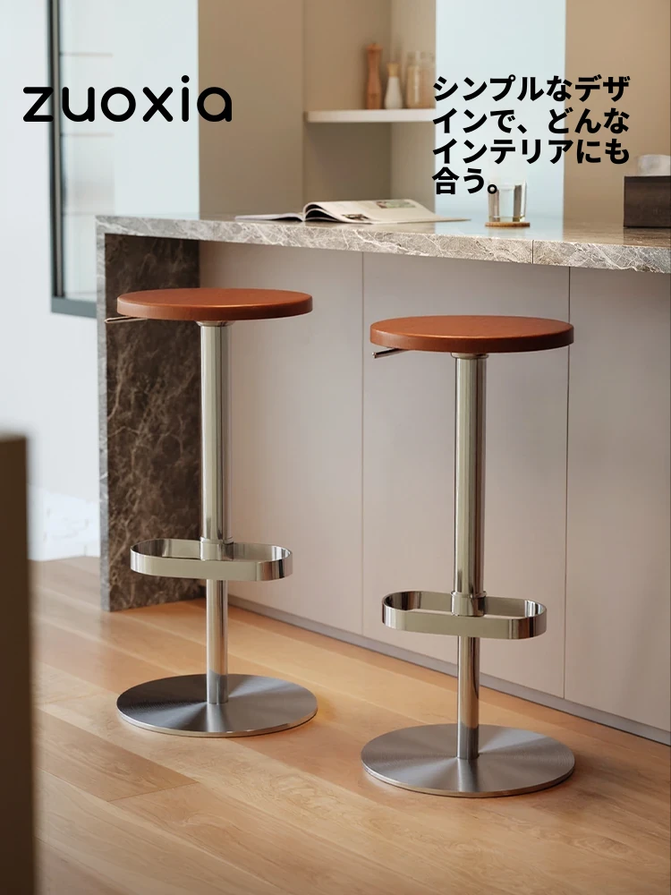 左下西モダンバーチェア 中古無垢材使用 可昇降 家庭用シンプルハイチェア デザイナー金属製スツール