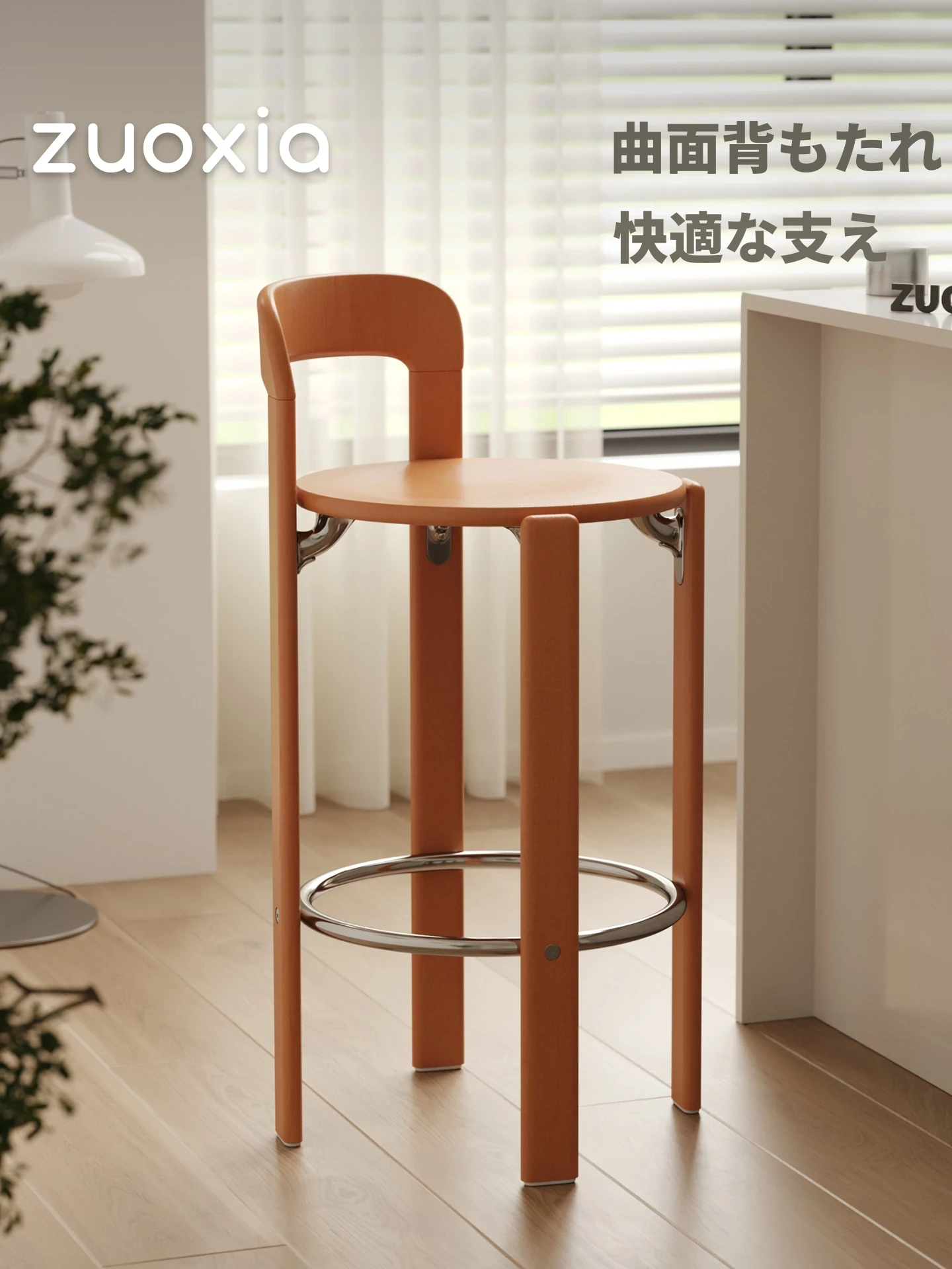 北欧風デザインのハイチェア - 左下吉尔スタイルの実木製、家庭用・カフェ・ティーショップに最適!スタイリッシュな島台椅子でおしゃれな空間を演出!