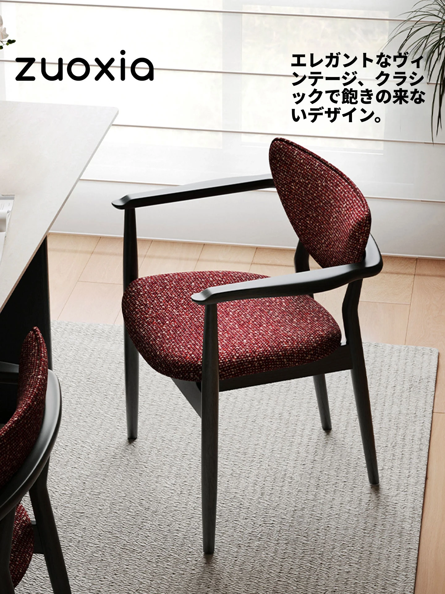 ヴィンテージスタイルのカミーユダイニングチェア - 北欧デザインのシンプルな実木製アームチェアで、リラックスした食事体験を提供します。おしゃれで快適な空間作りに最適!