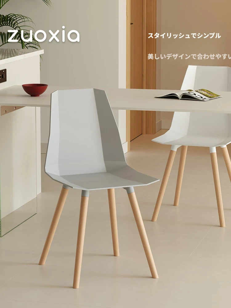 左下デザインのダイニングチェア|シンプルでスタイリッシュ、実木製・厚手プラスチックの背もたれ付き|リビングや書斎にも最適なトレンドチェア!