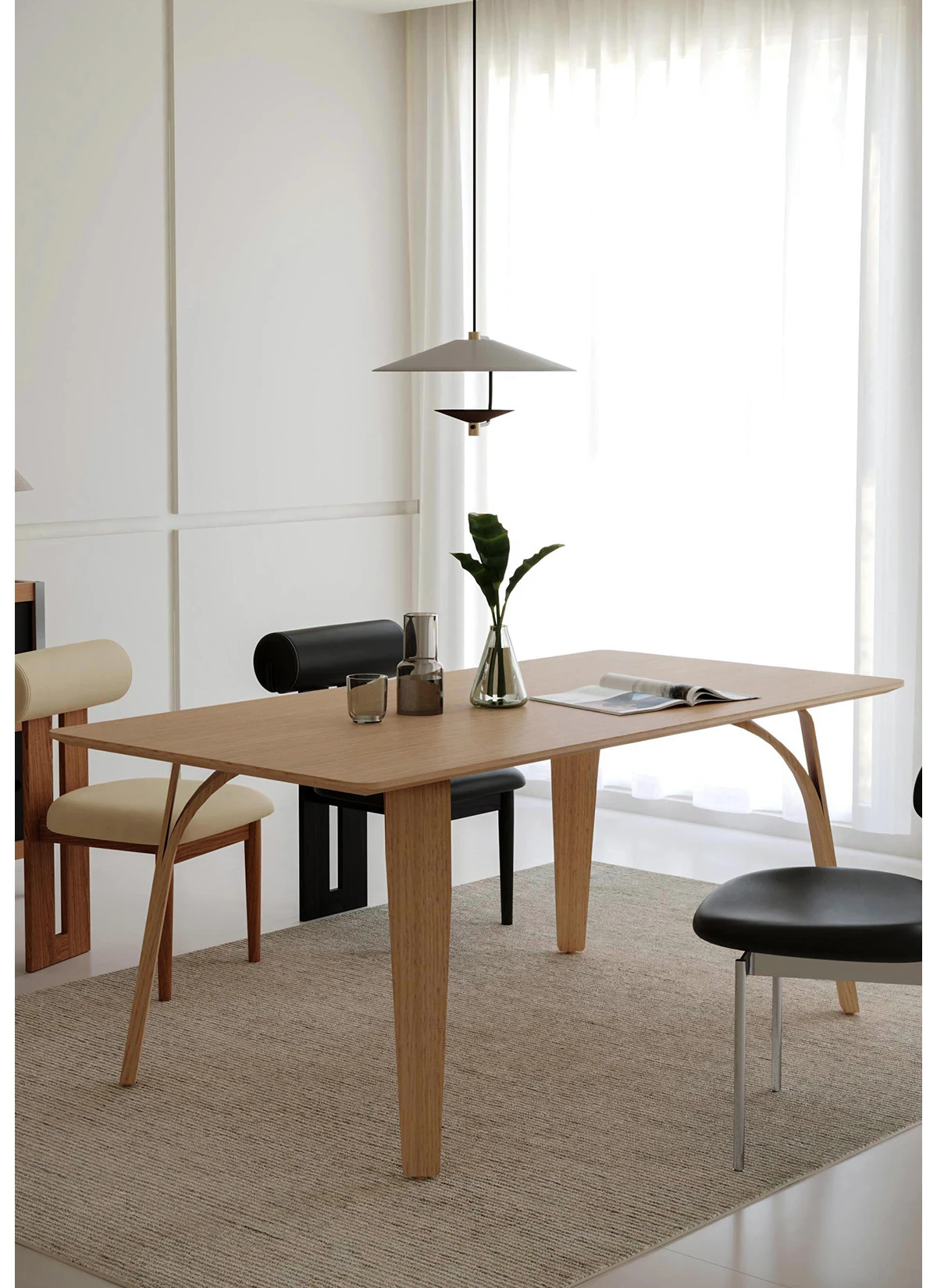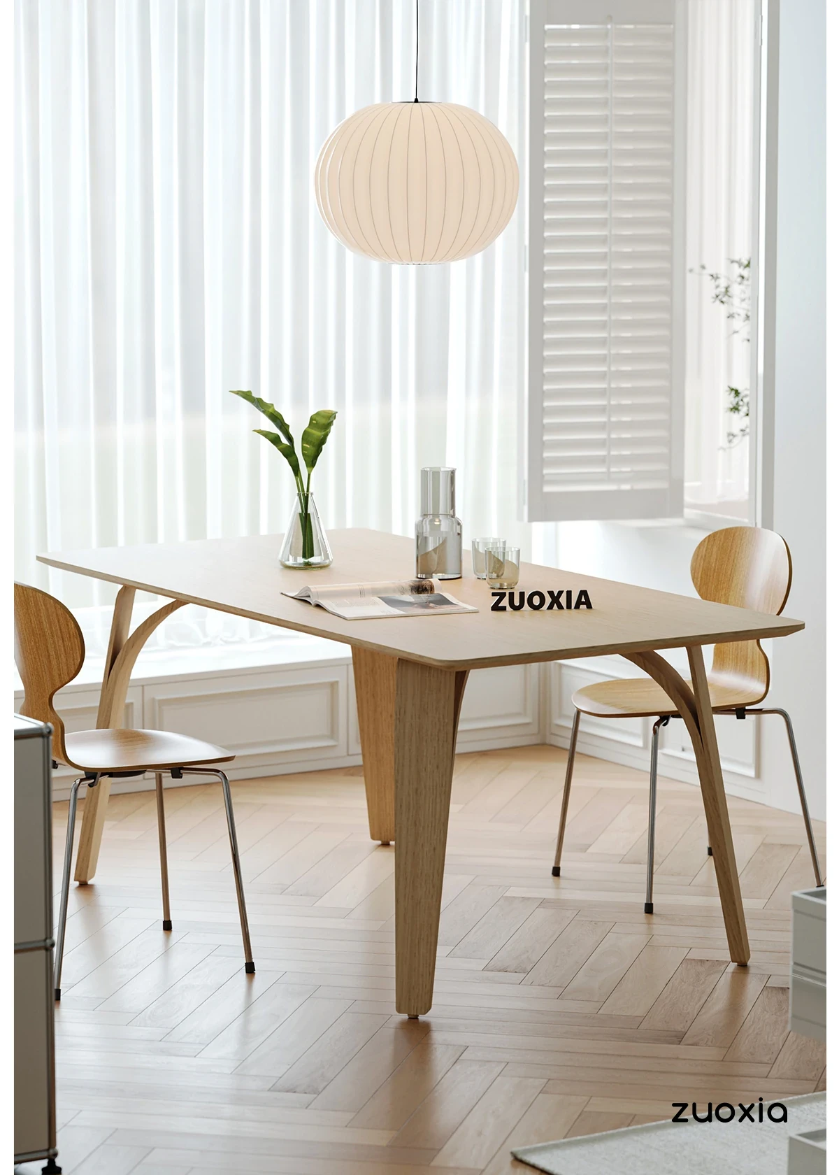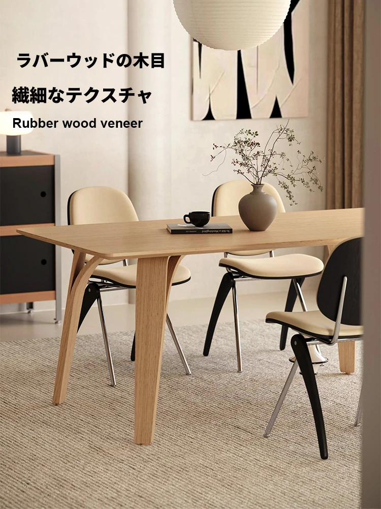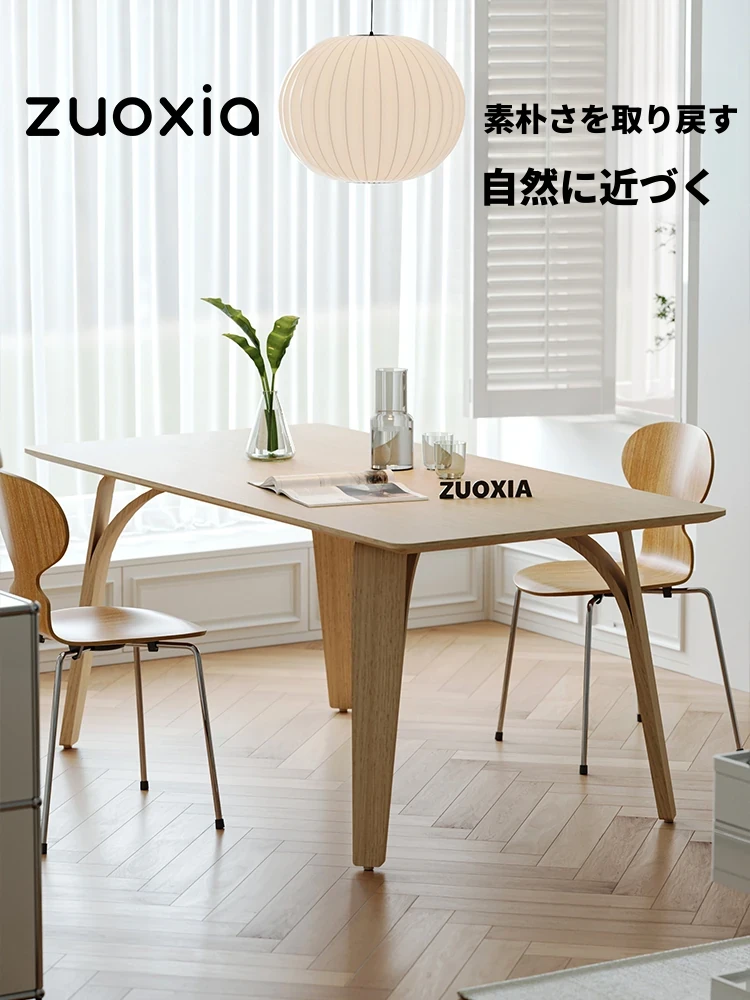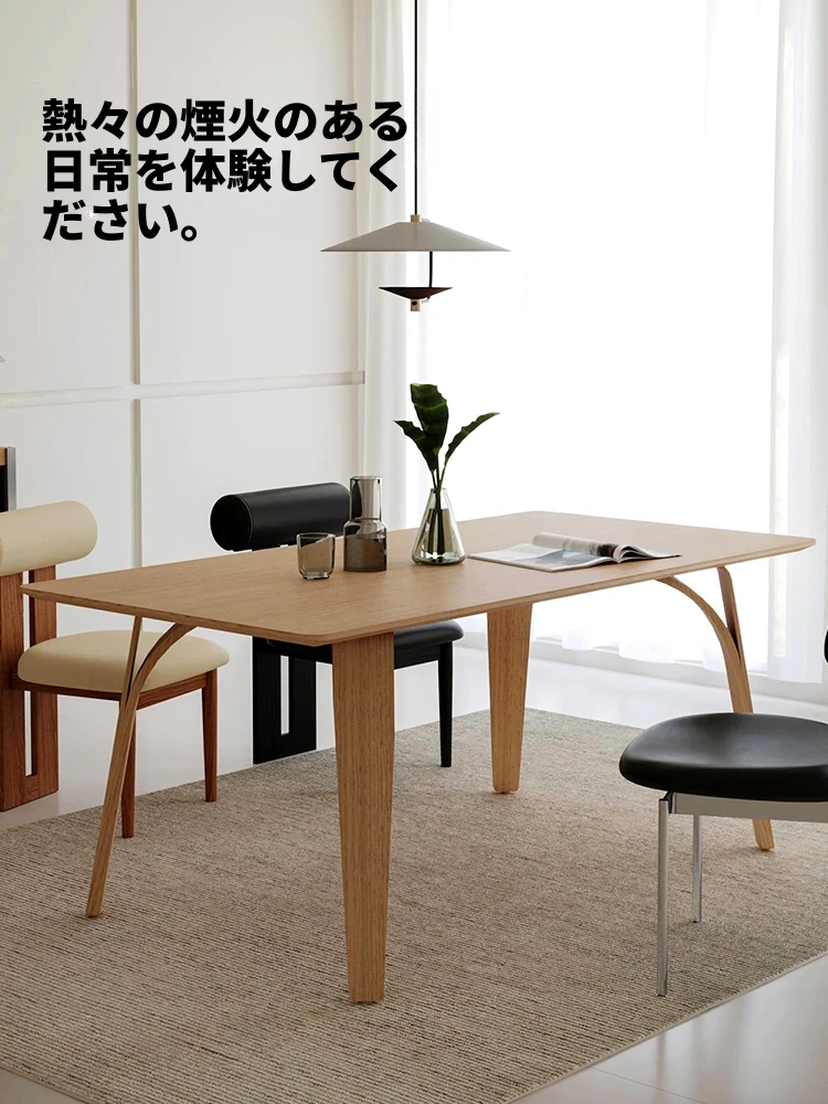 モダンミニマリストの左下原野ロングテーブル - 和の美を感じるナチュラルウッドのダイニングテーブル。家庭用や商業用に最適なシンプルで洗練されたデザイン、食事や商談にぴったり!