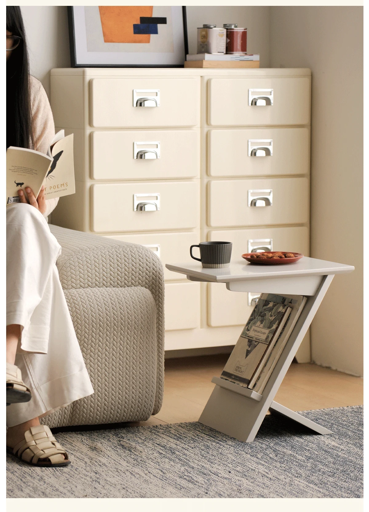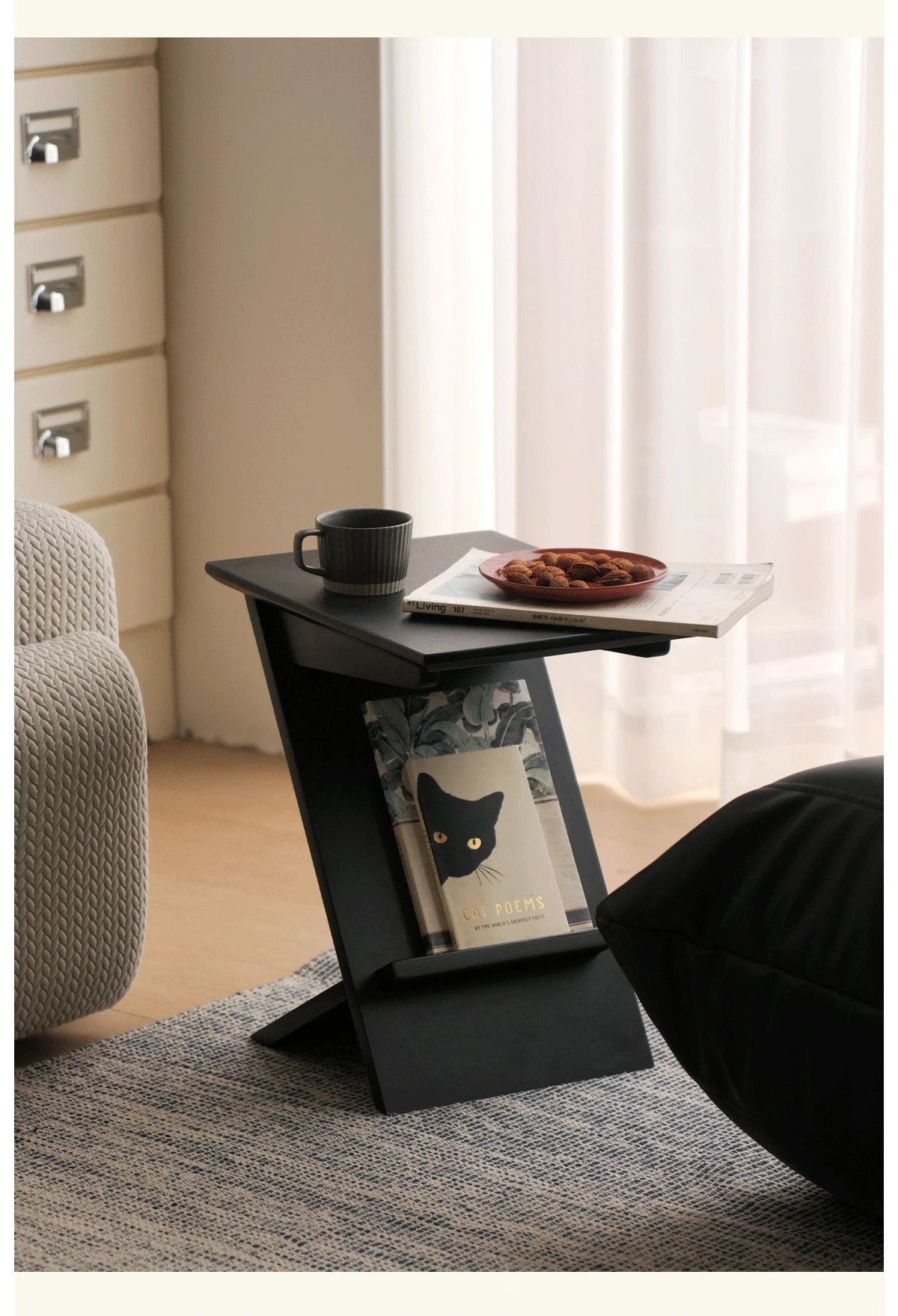 左下の傾斜タワー付き北欧スタイルの軽奢モダンな無垢材製ソファコーナー用ティーテーブル、小型デザイン収納ラックで、洗練された空間を演出します。心地よいひとときをお楽しみください。