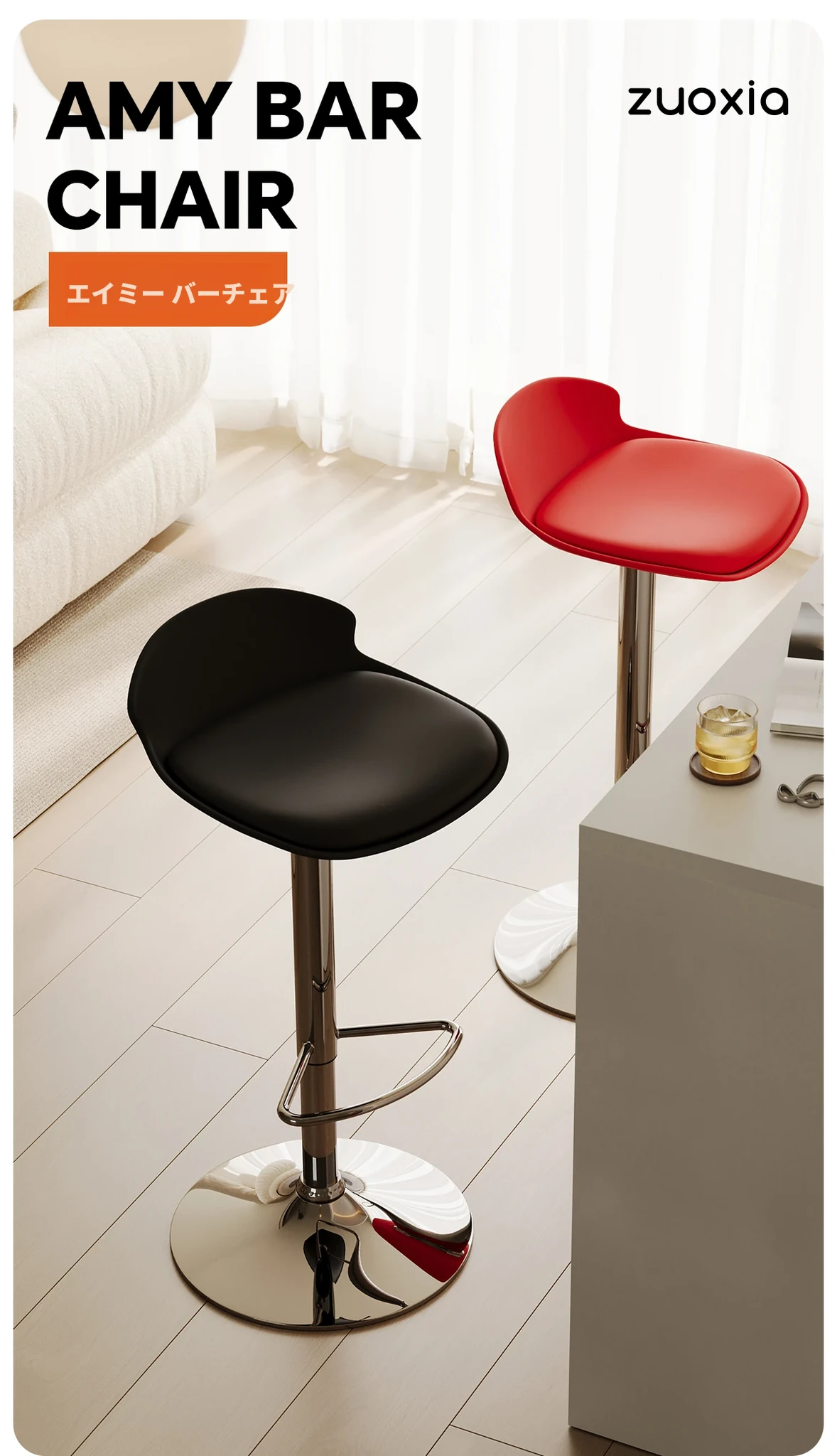 北欧風シンプルモダン回転バーチェア - 自宅用背もたれ付き高脚椅子、バーやカウンターに最適!快適さとスタイルを兼ね備えた一品。