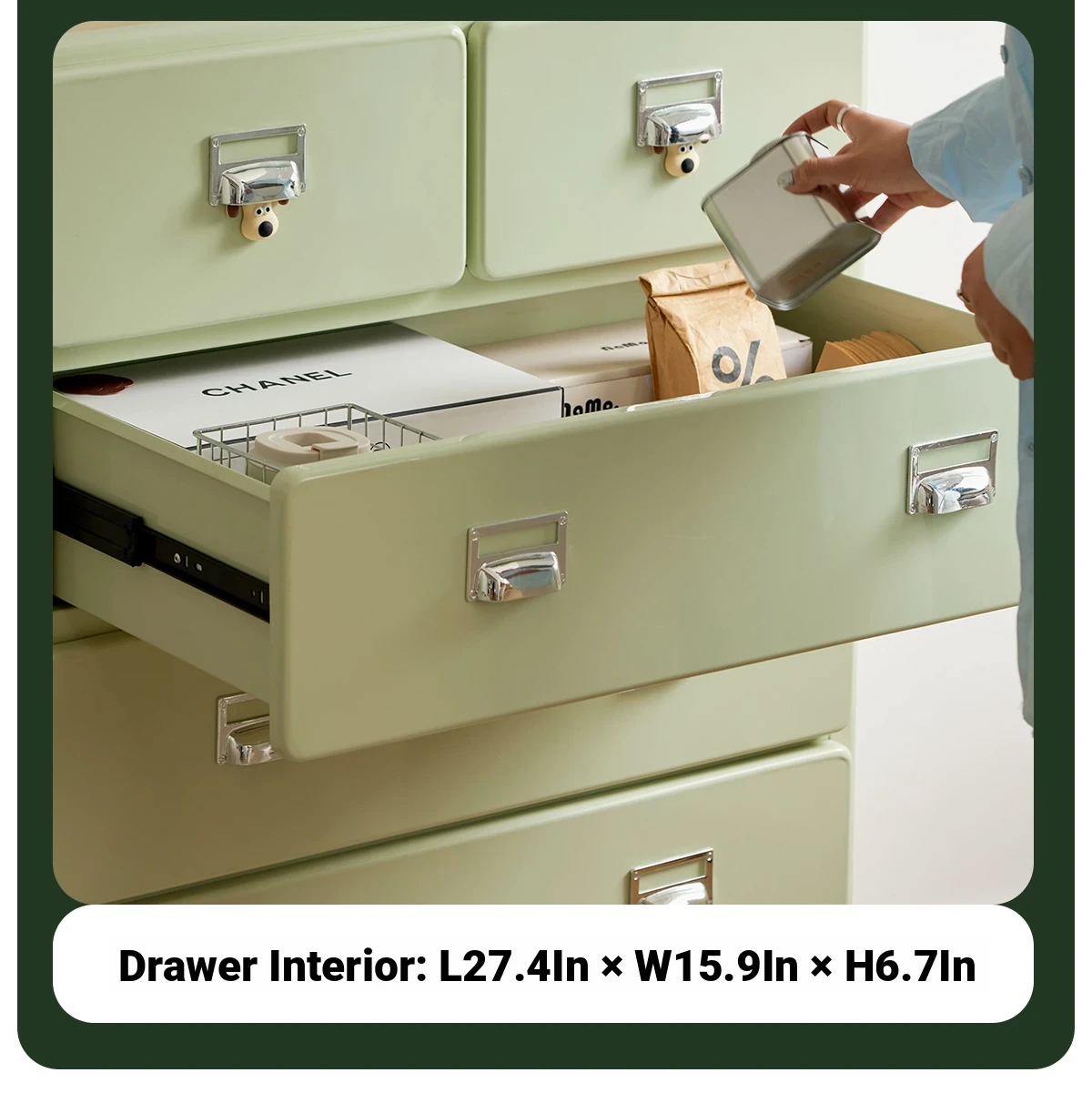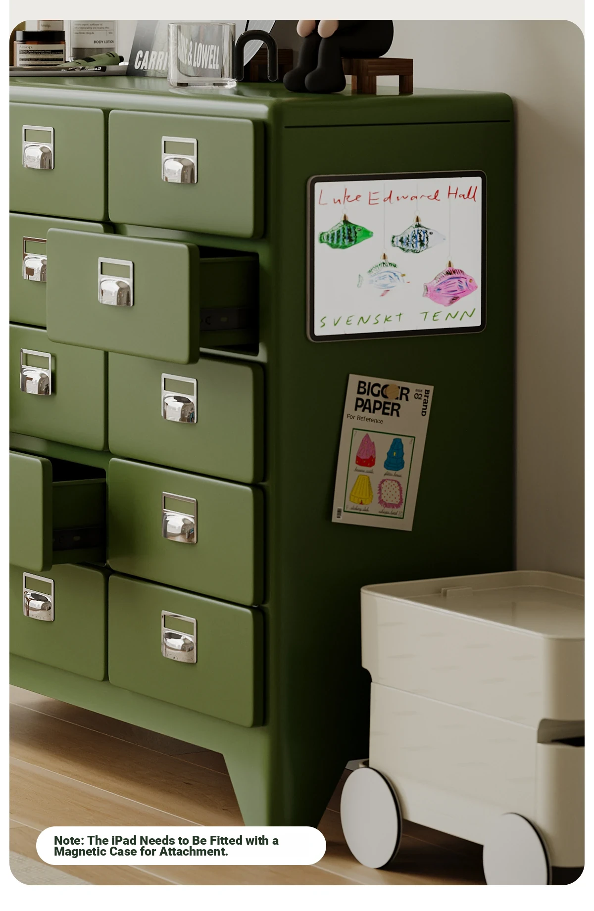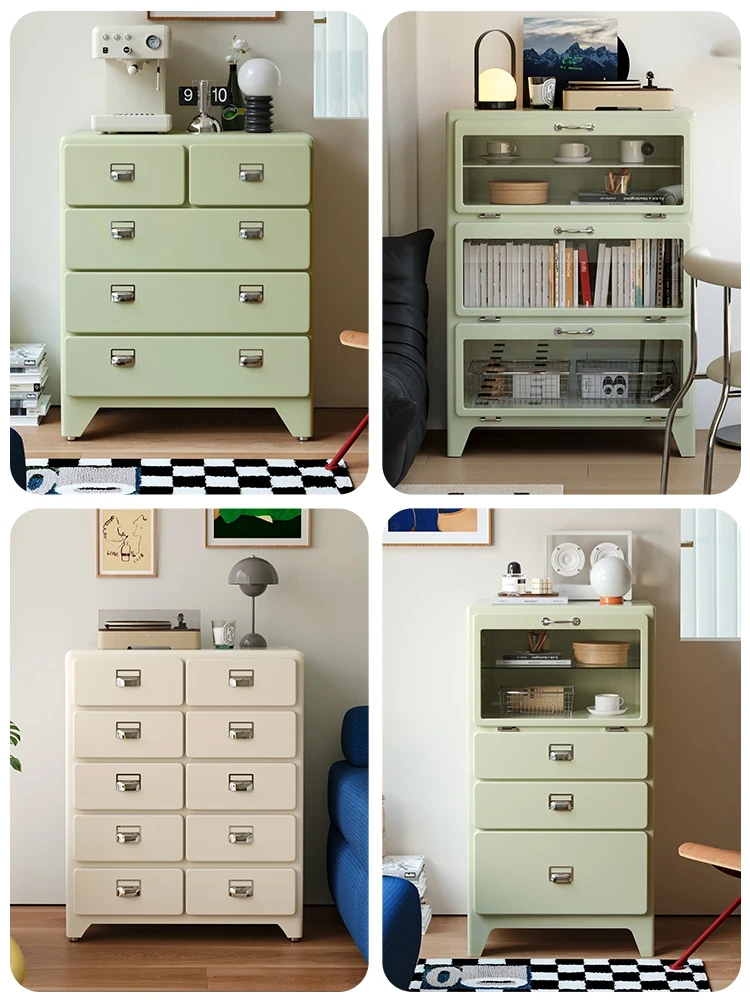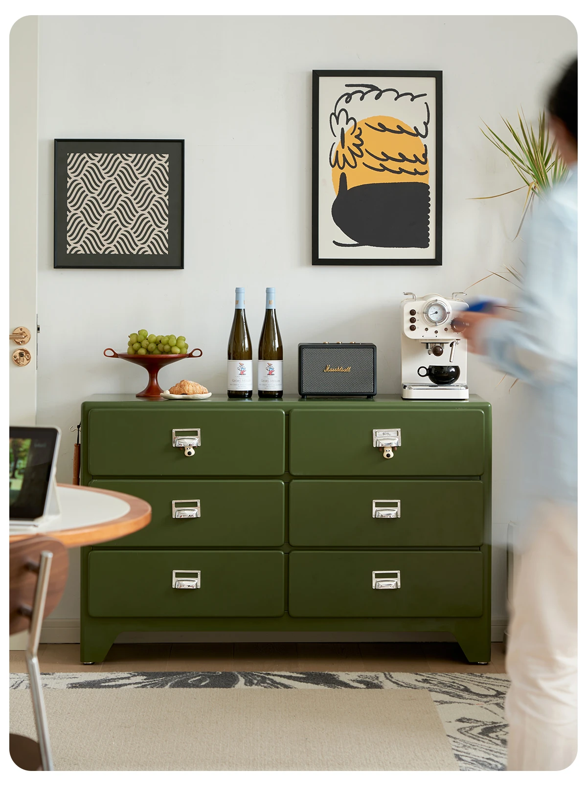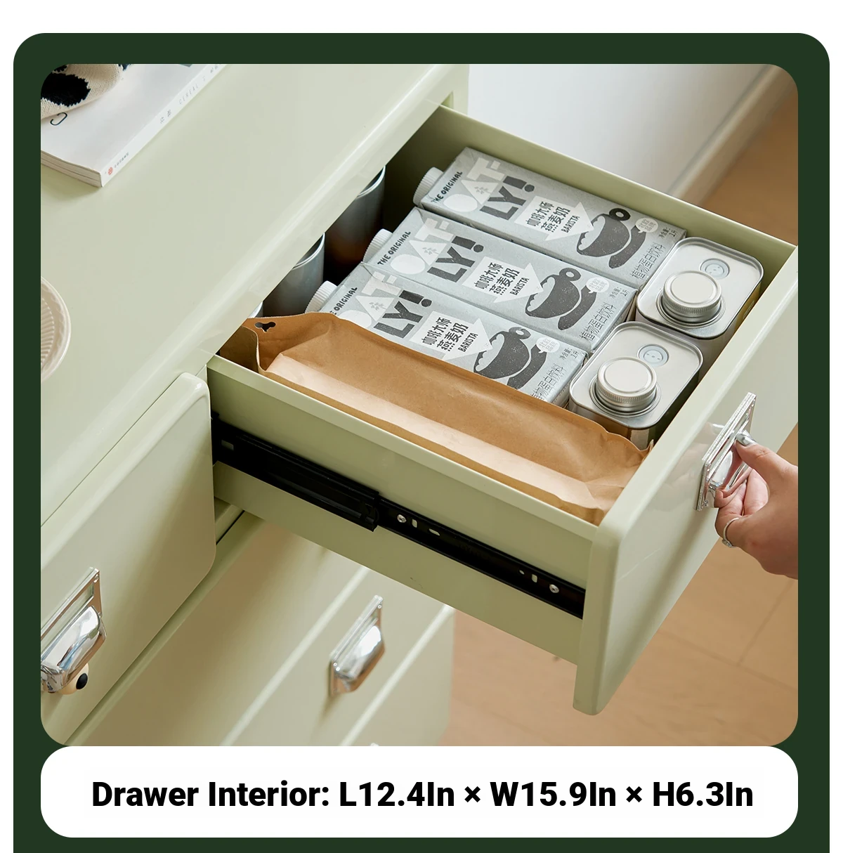左下MOMA風レトロ鉄製4段5引き出しキャビネット - 中古の和風ダイニングサイドボード、リビングルームにぴったりな金属製の収納家具!