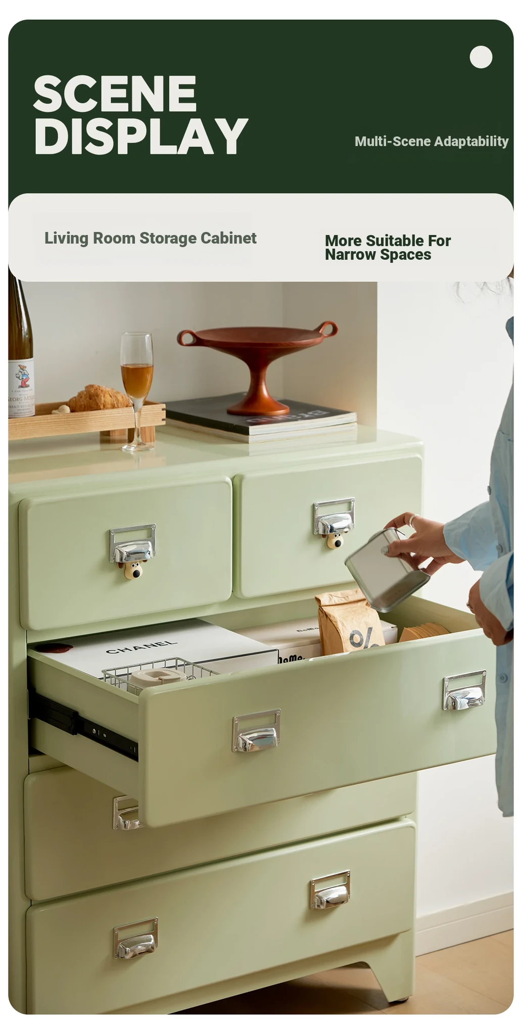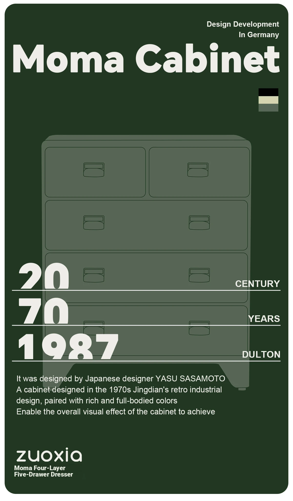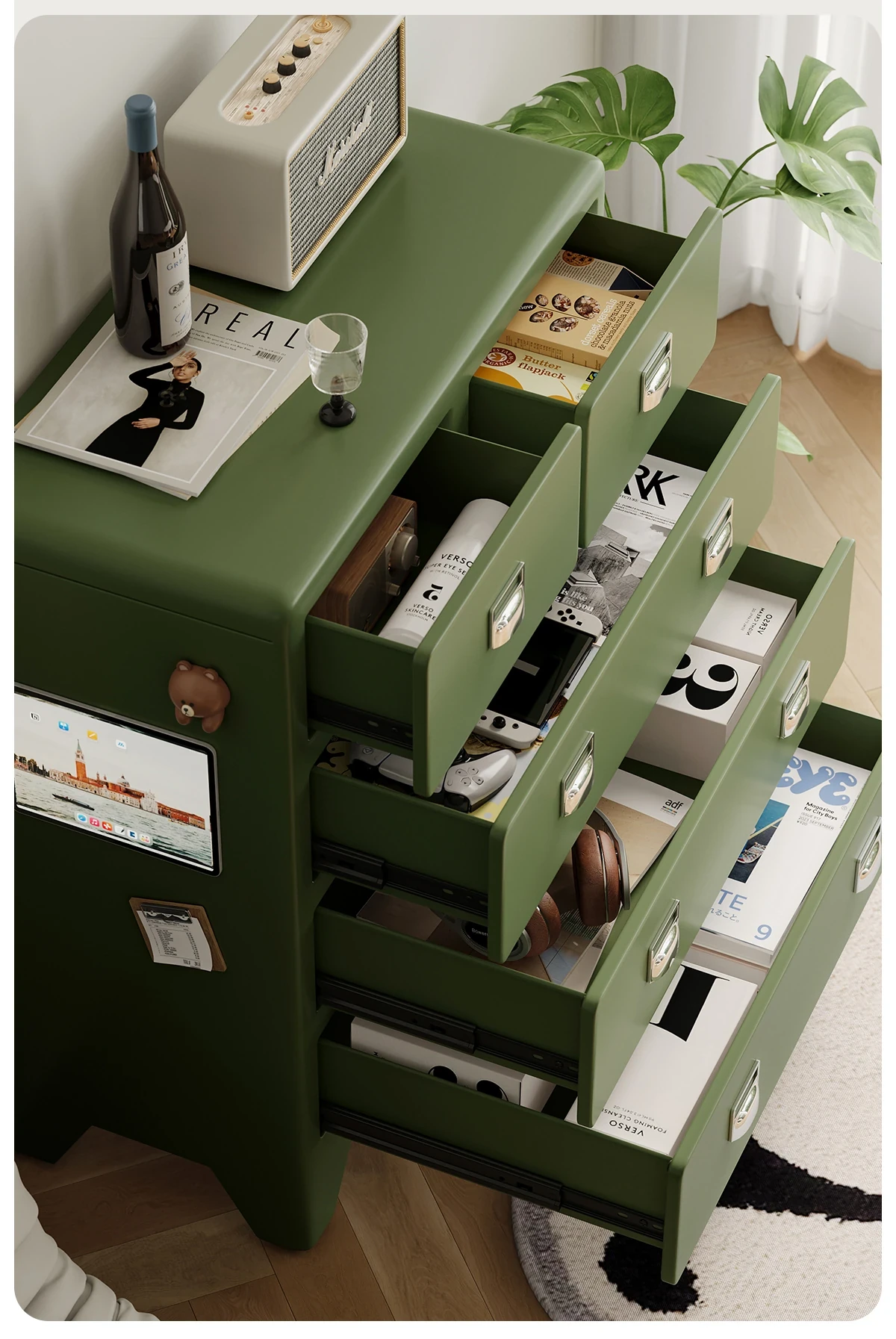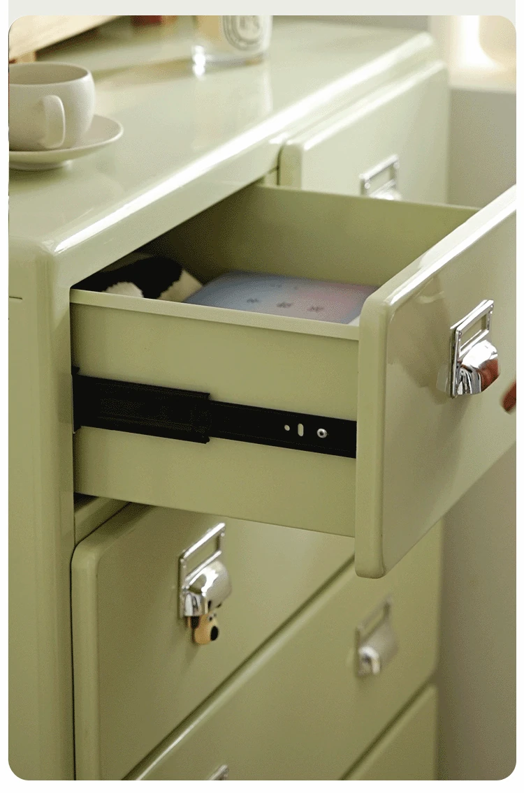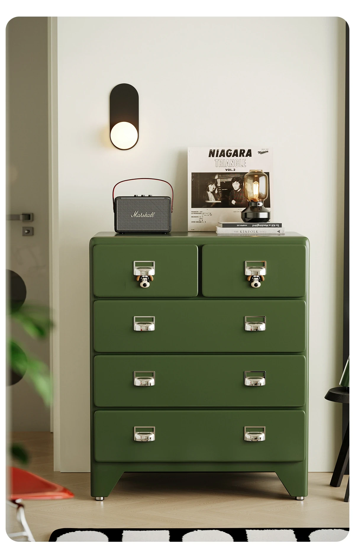 左下MOMA風レトロ鉄製4段5引き出しキャビネット - 中古の和風ダイニングサイドボード、リビングルームにぴったりな金属製の収納家具!