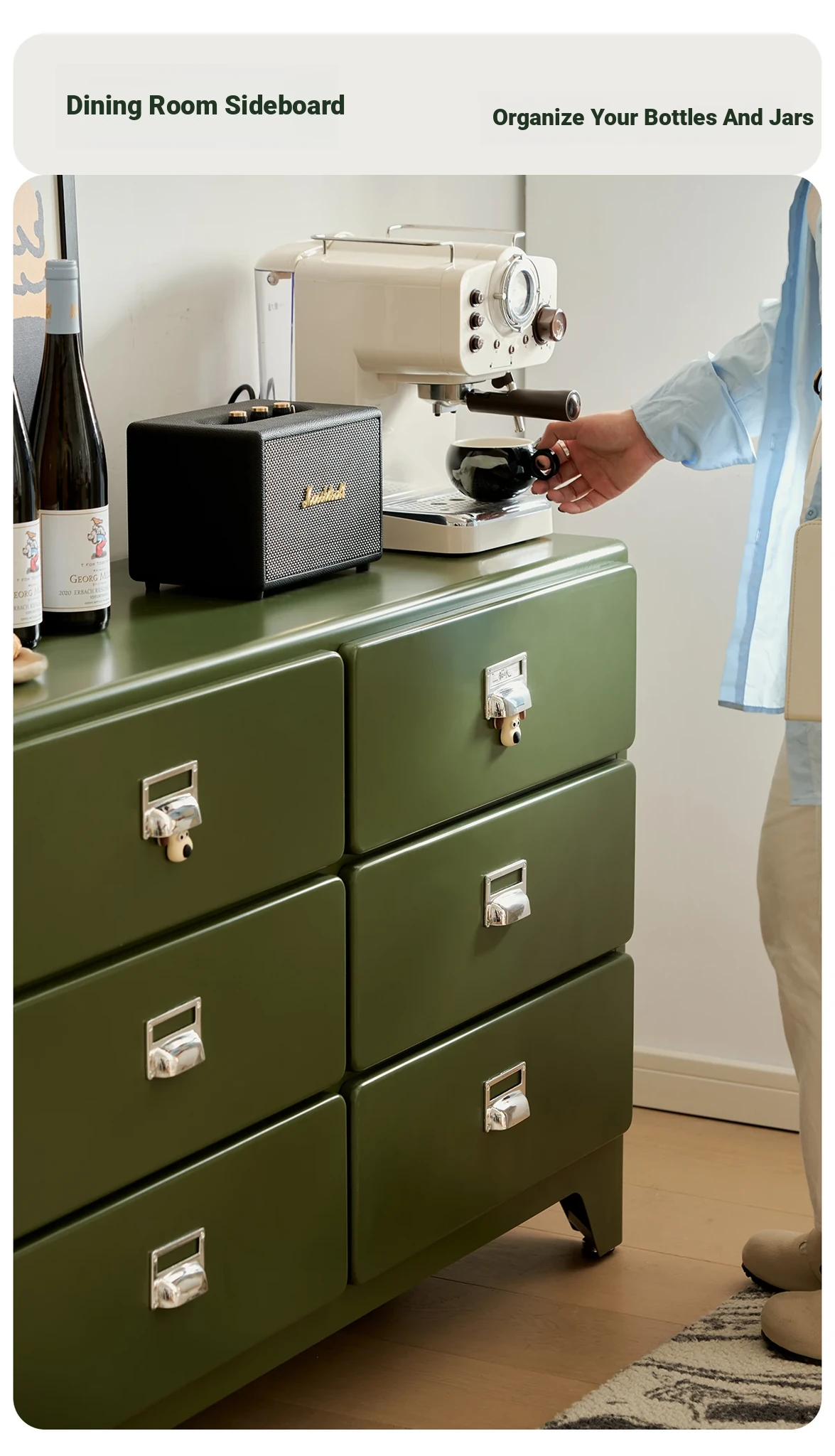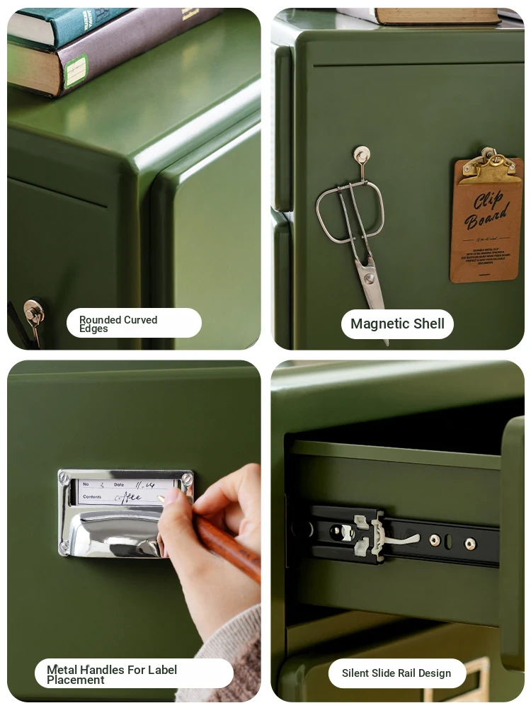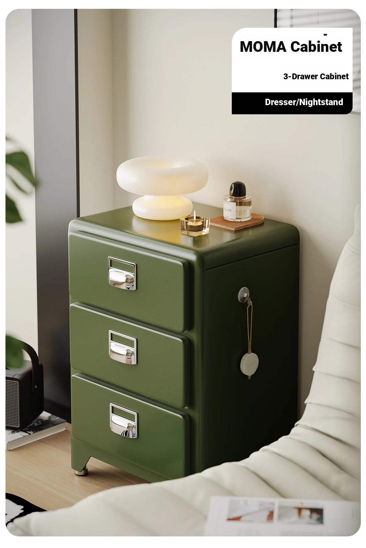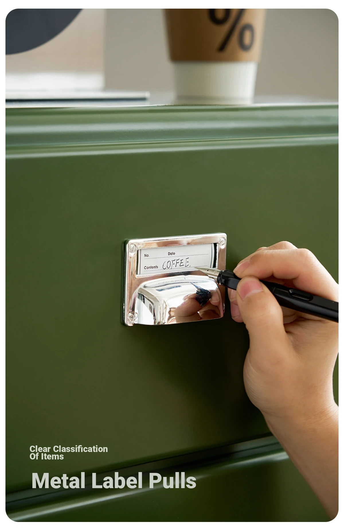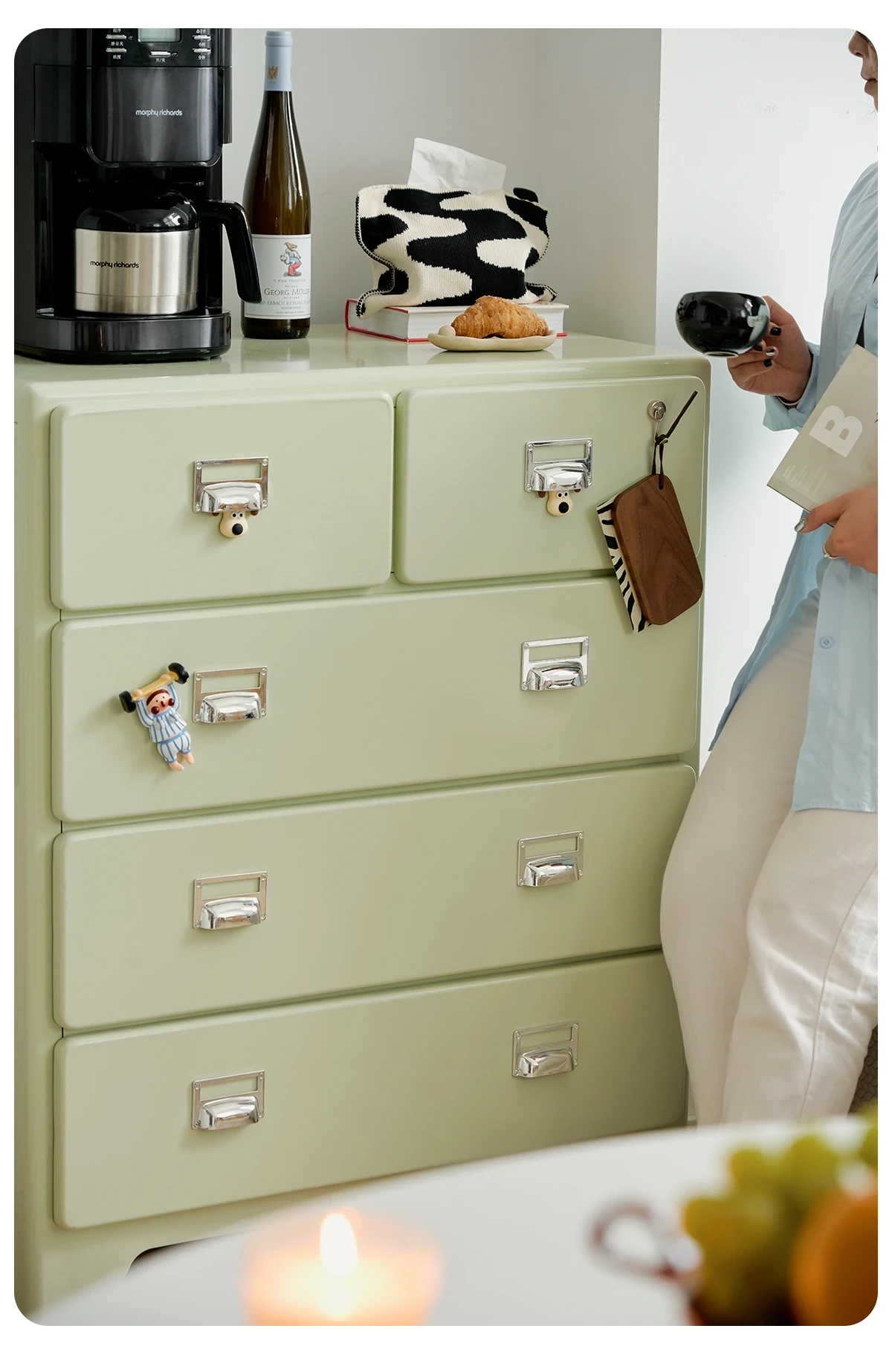 左下MOMA風レトロ鉄製4段5引き出しキャビネット - 中古の和風ダイニングサイドボード、リビングルームにぴったりな金属製の収納家具!
