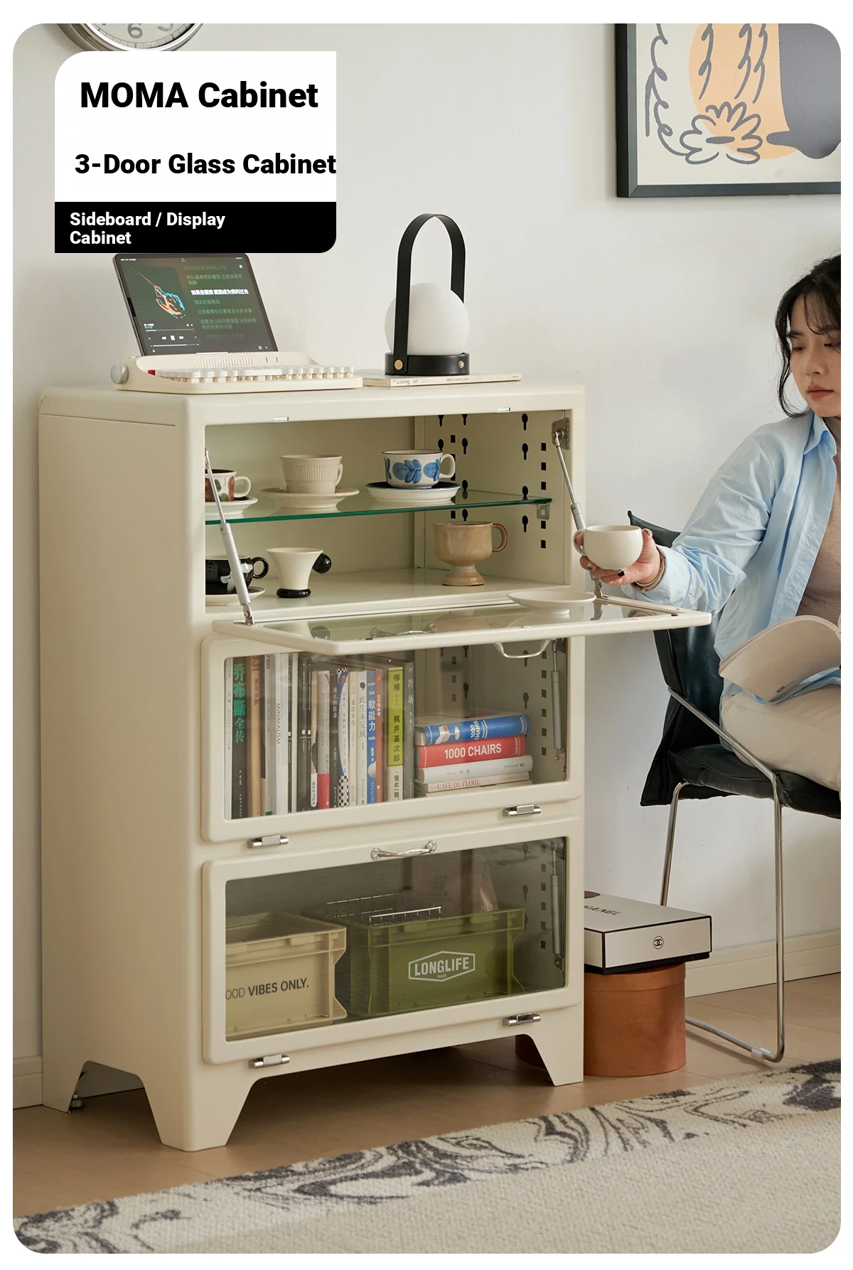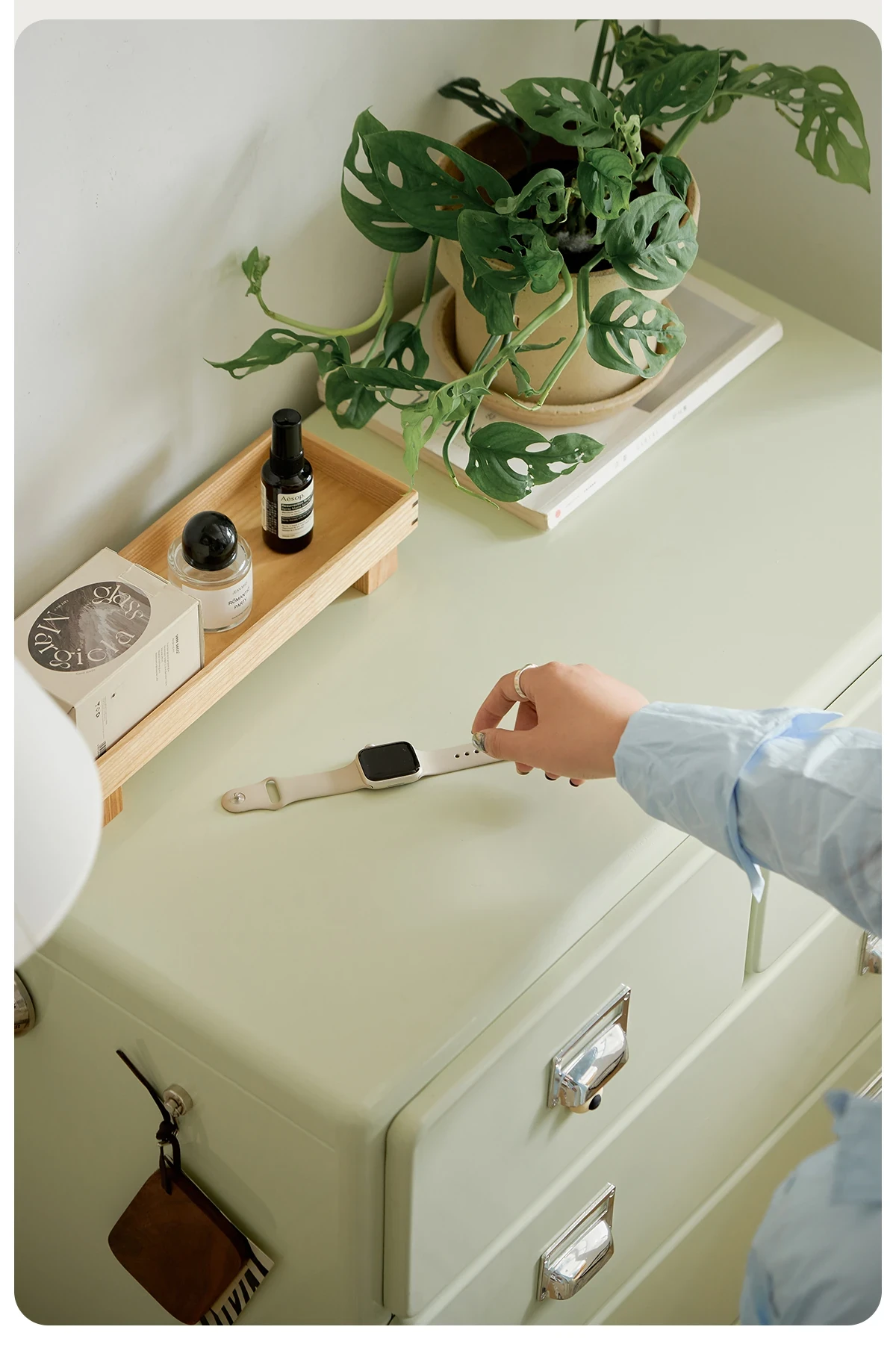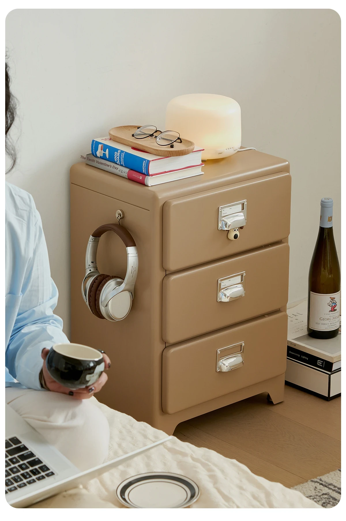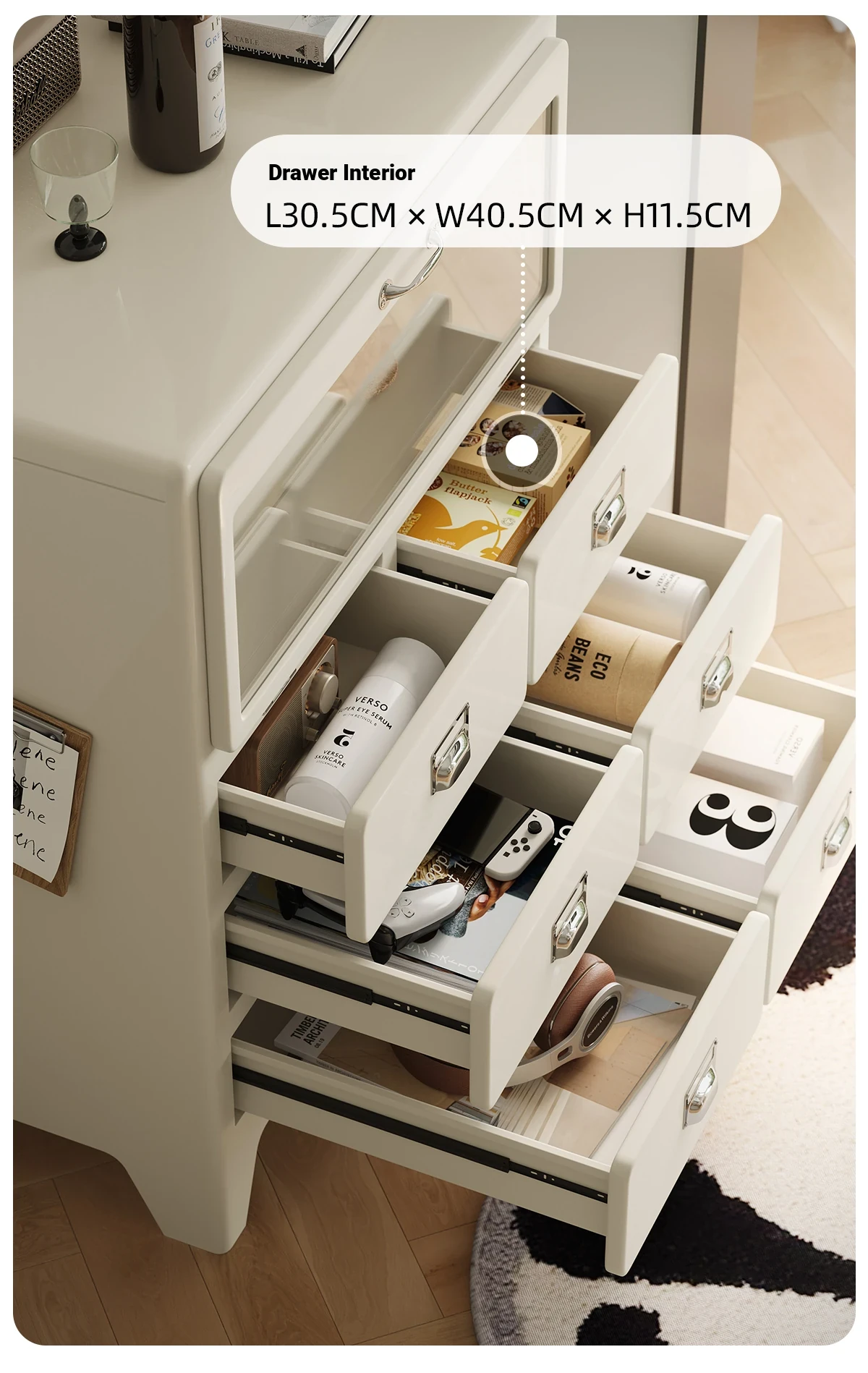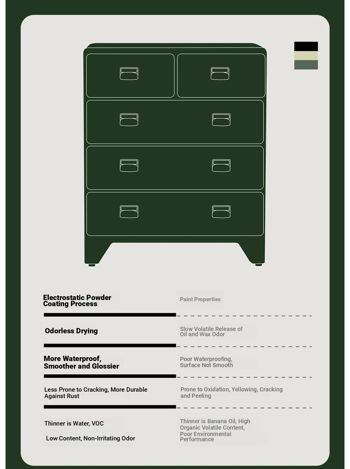 左下MOMA風レトロ鉄製4段5引き出しキャビネット - 中古の和風ダイニングサイドボード、リビングルームにぴったりな金属製の収納家具!