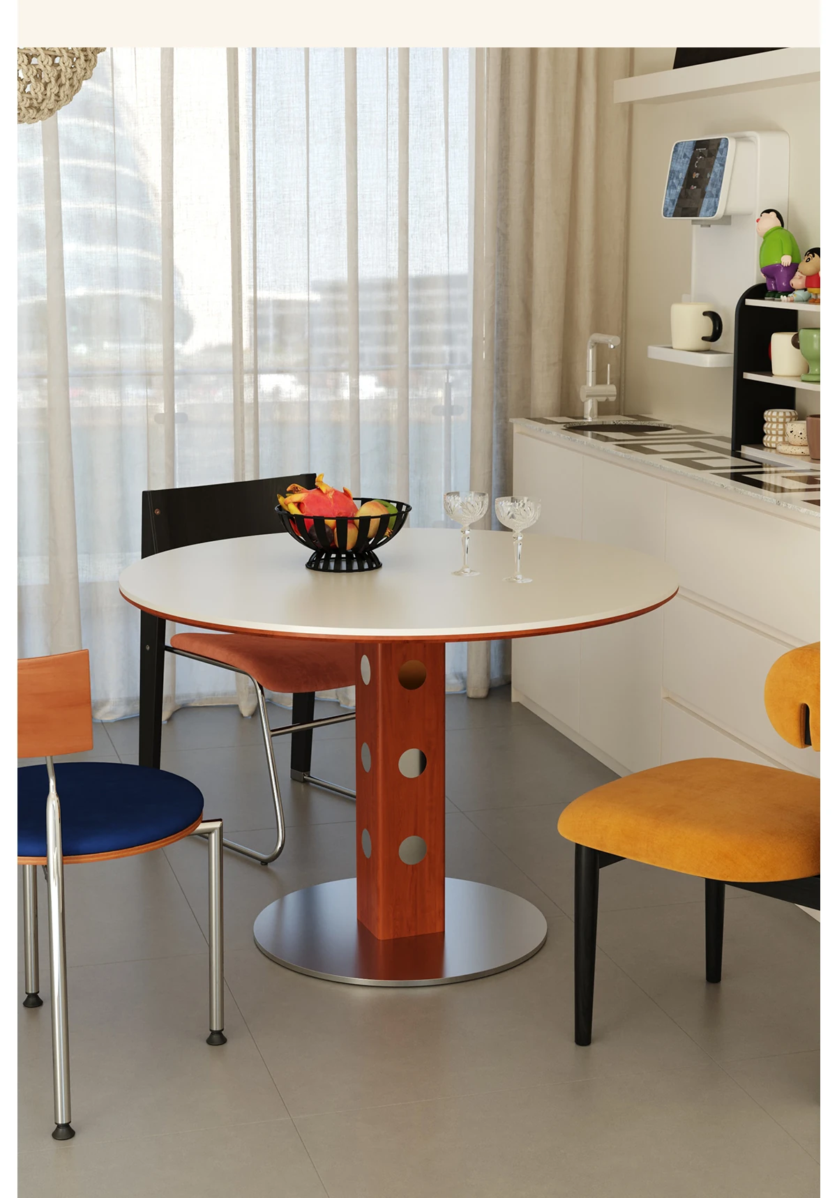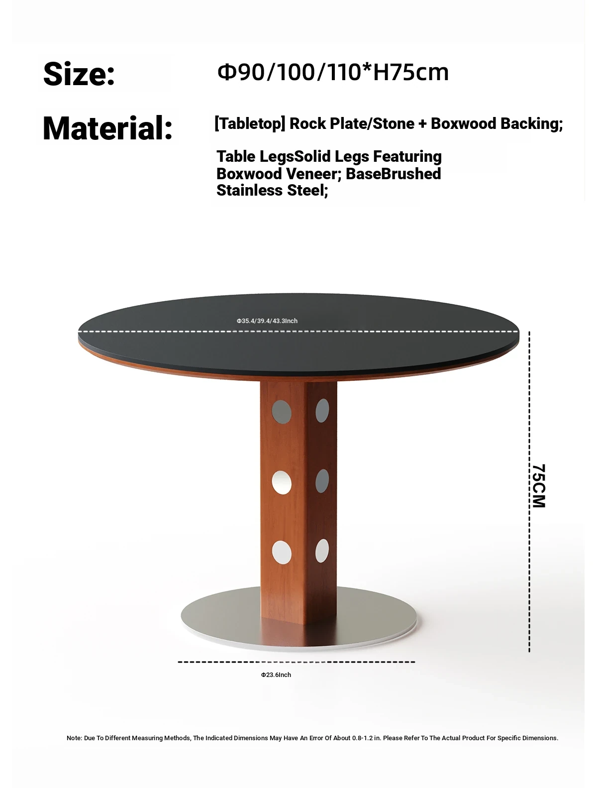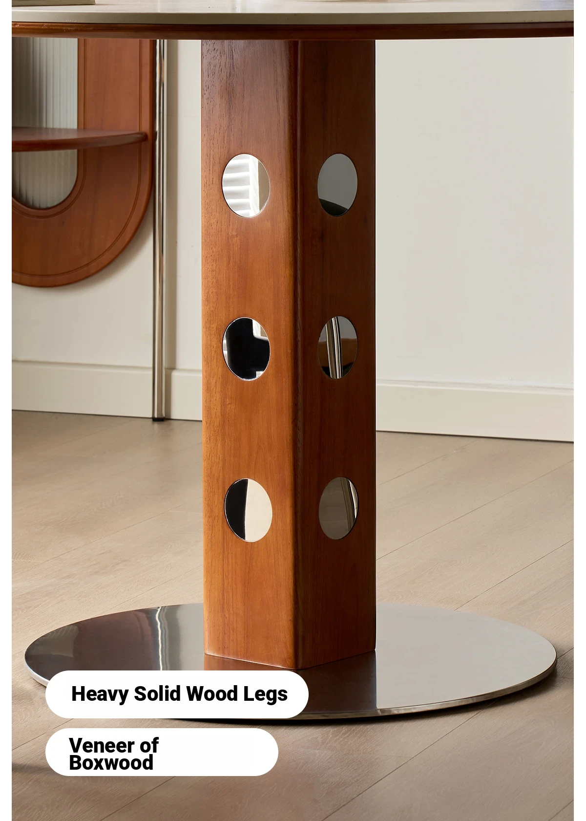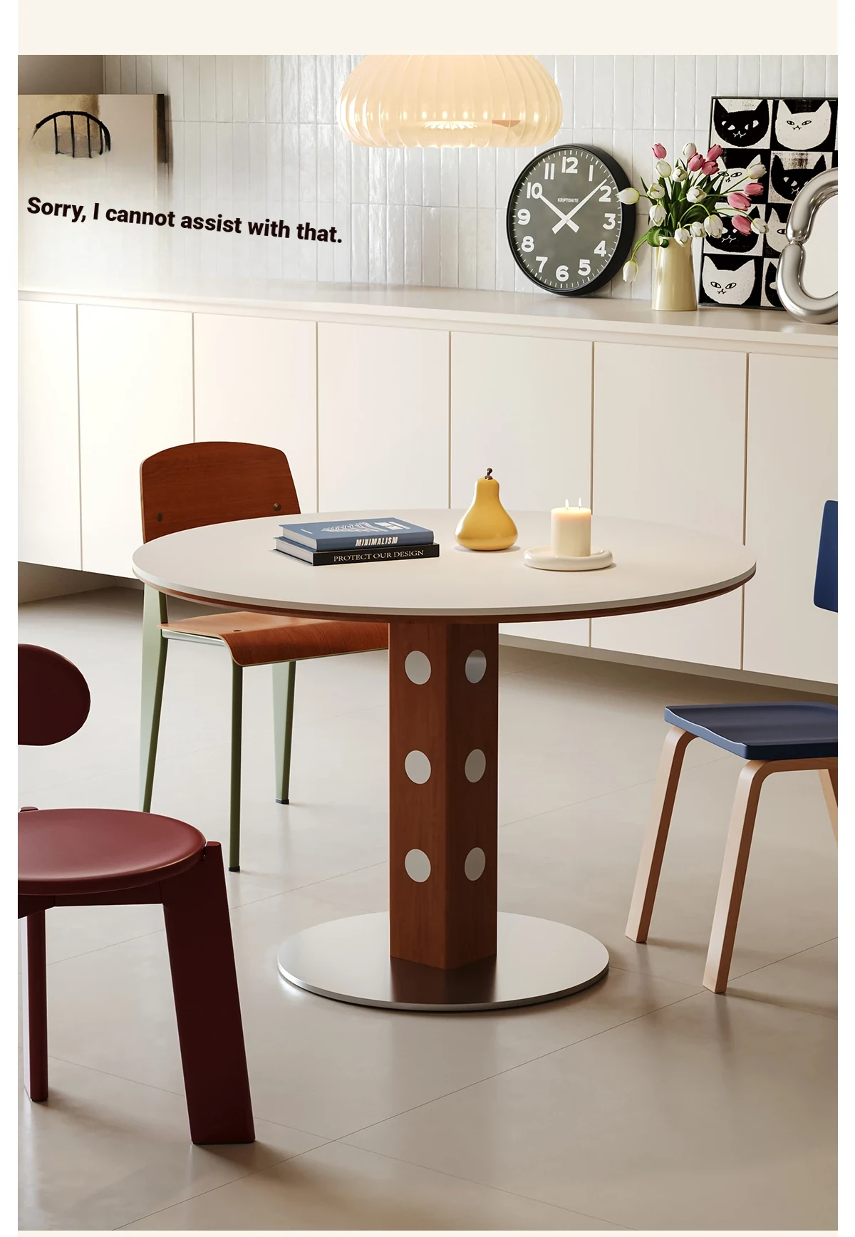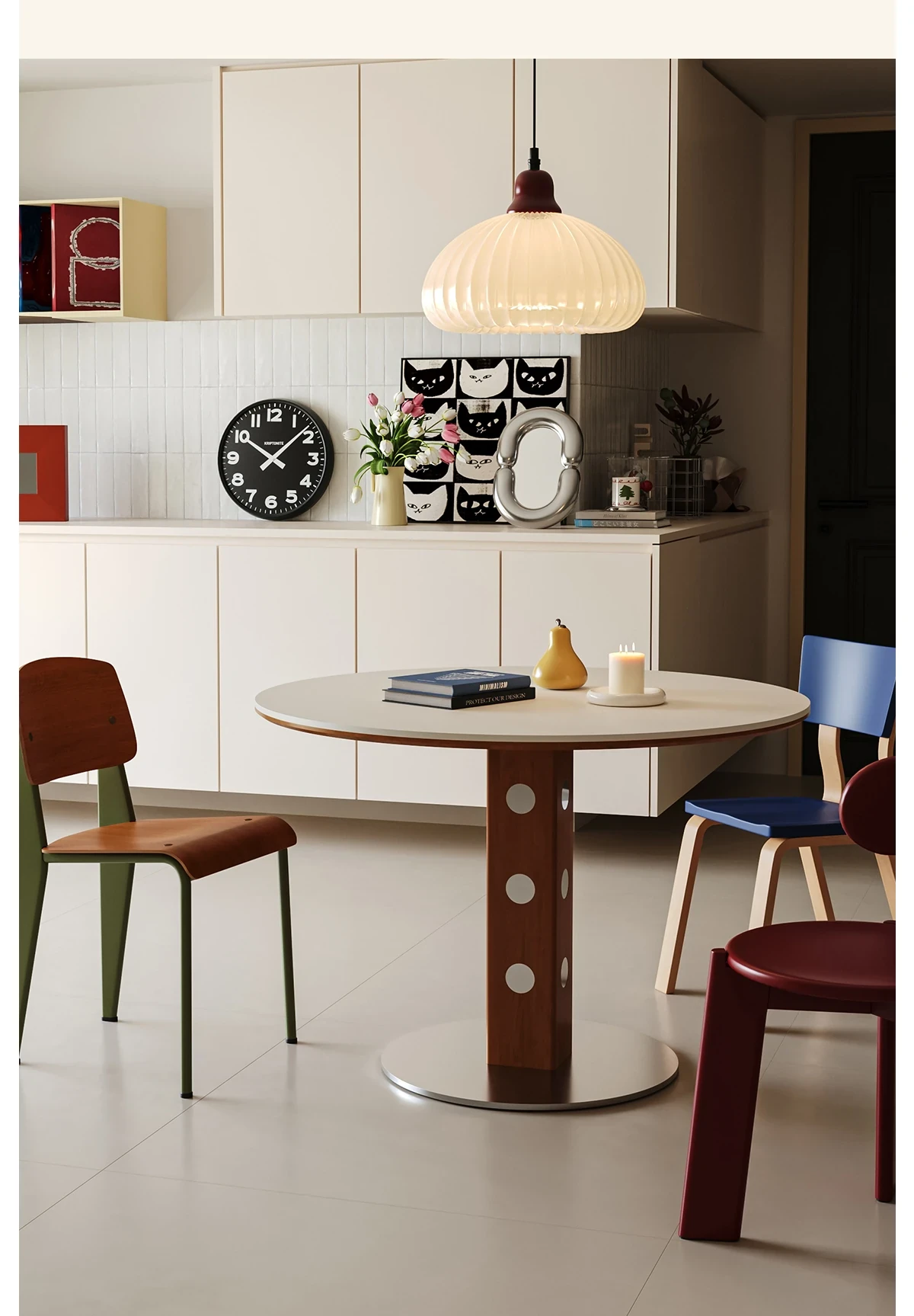 左下バーグのヴィンテージ風丸型ダイニングテーブル - 小さなお部屋にもぴったり!バウハウススタイルの実木と岩板仕様で、洗練された雰囲気を演出。おしゃれなリビングの必需品!