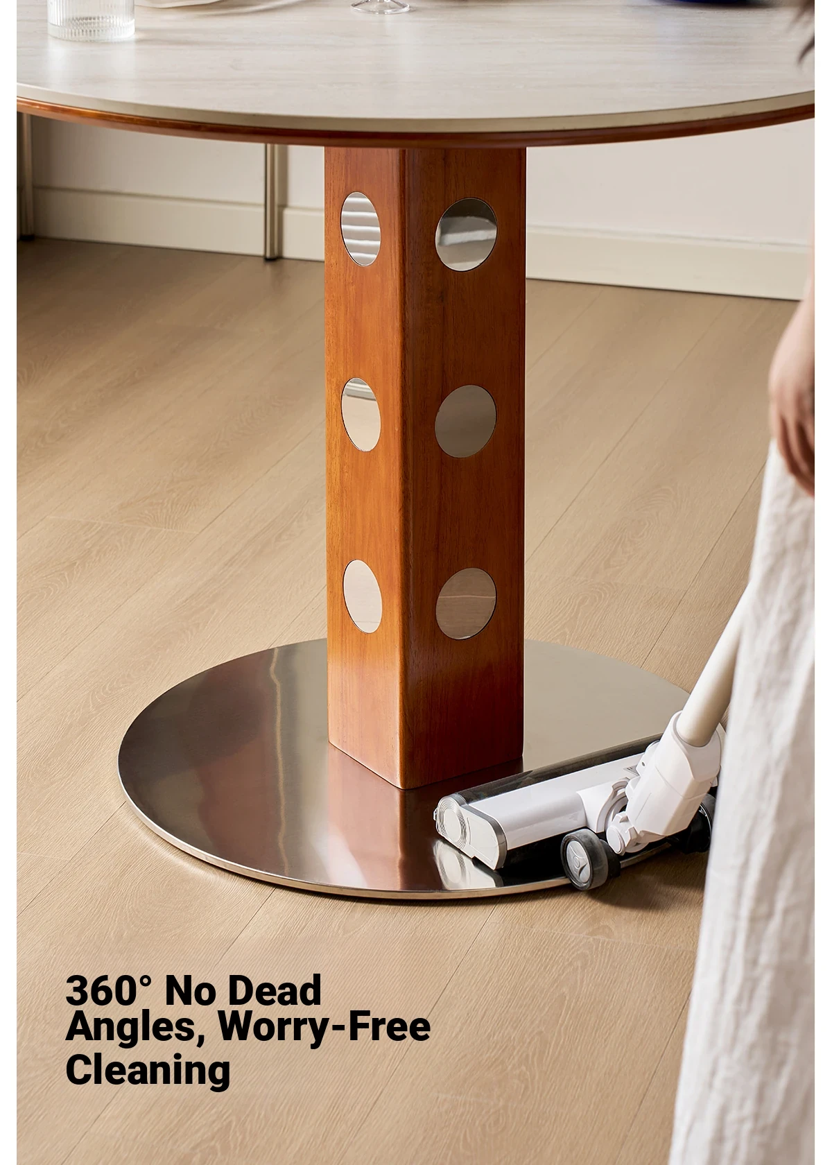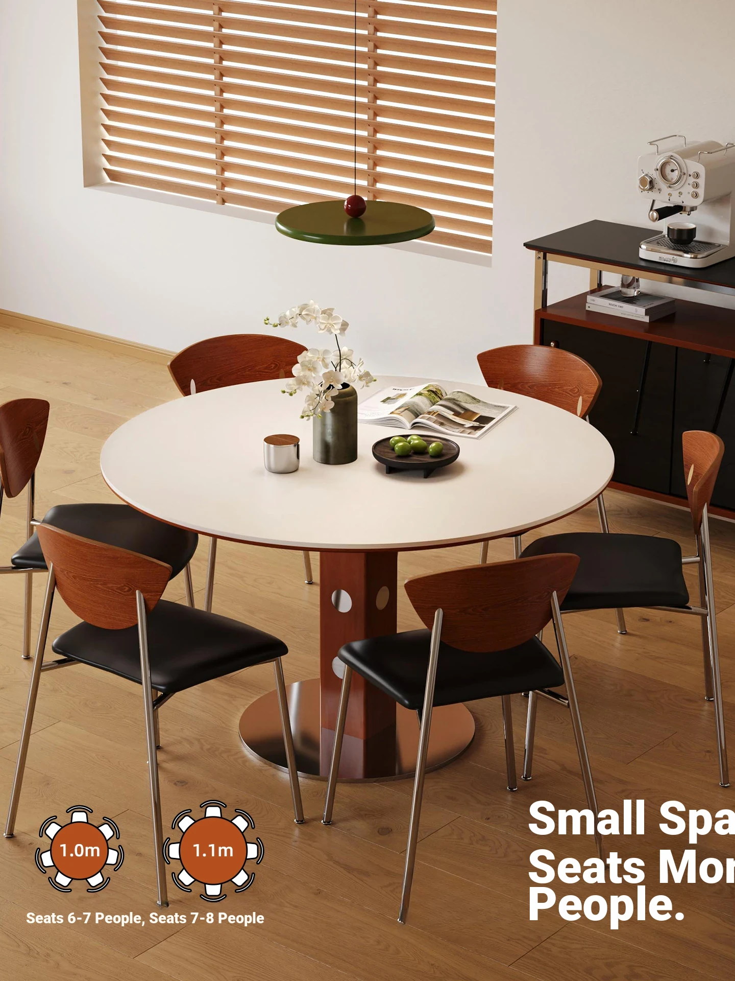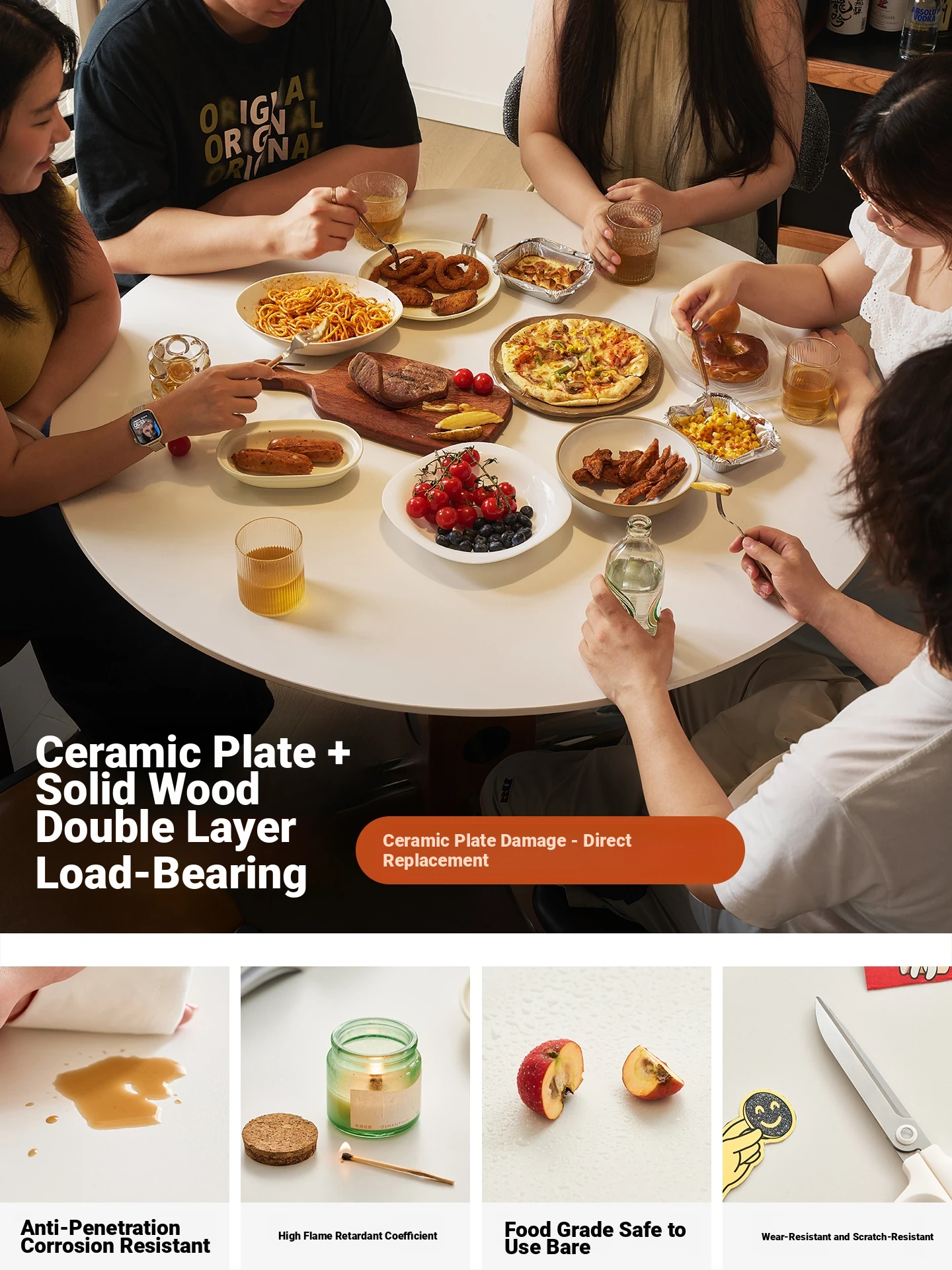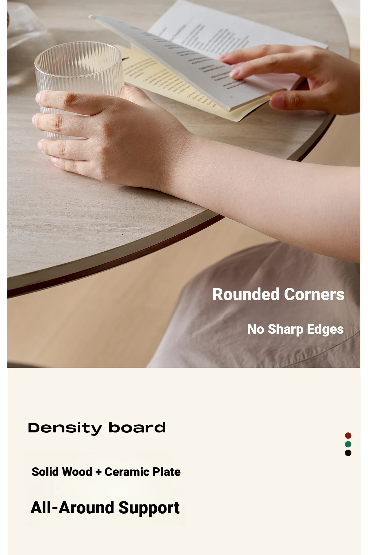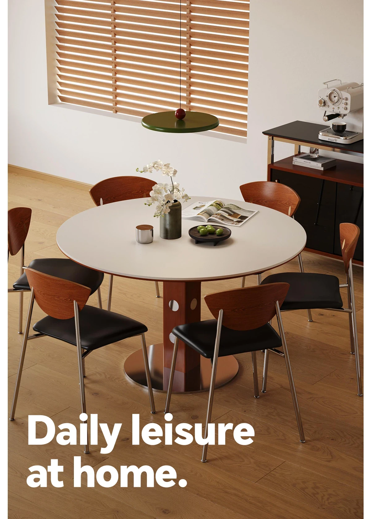 左下バーグのヴィンテージ風丸型ダイニングテーブル - 小さなお部屋にもぴったり!バウハウススタイルの実木と岩板仕様で、洗練された雰囲気を演出。おしゃれなリビングの必需品!
