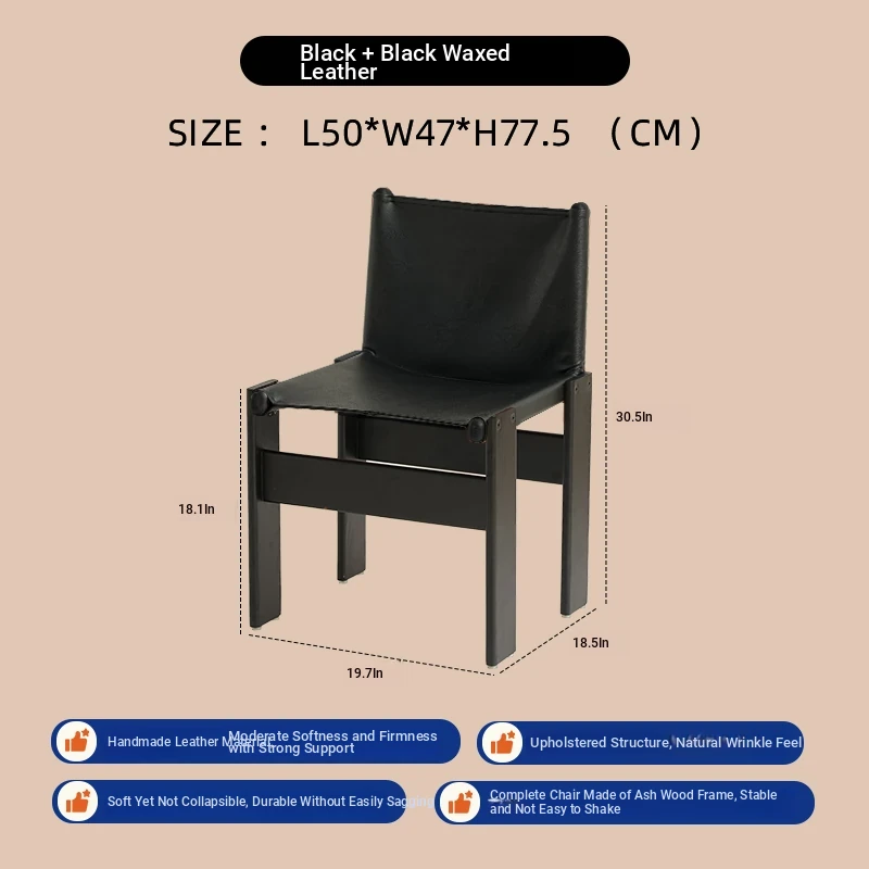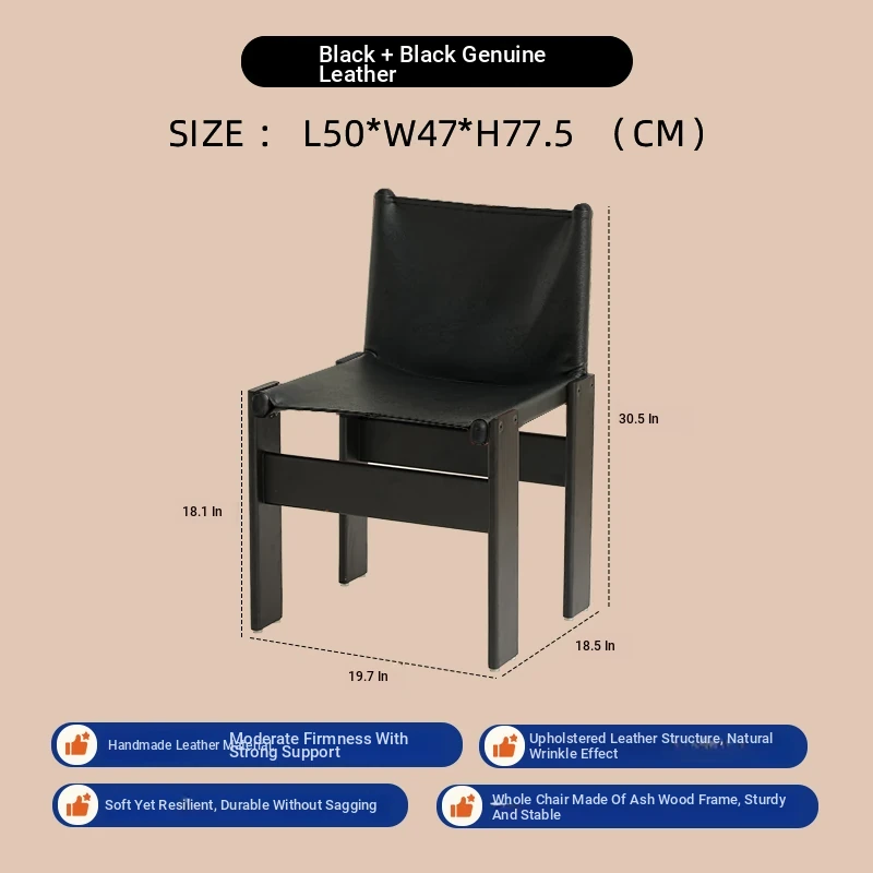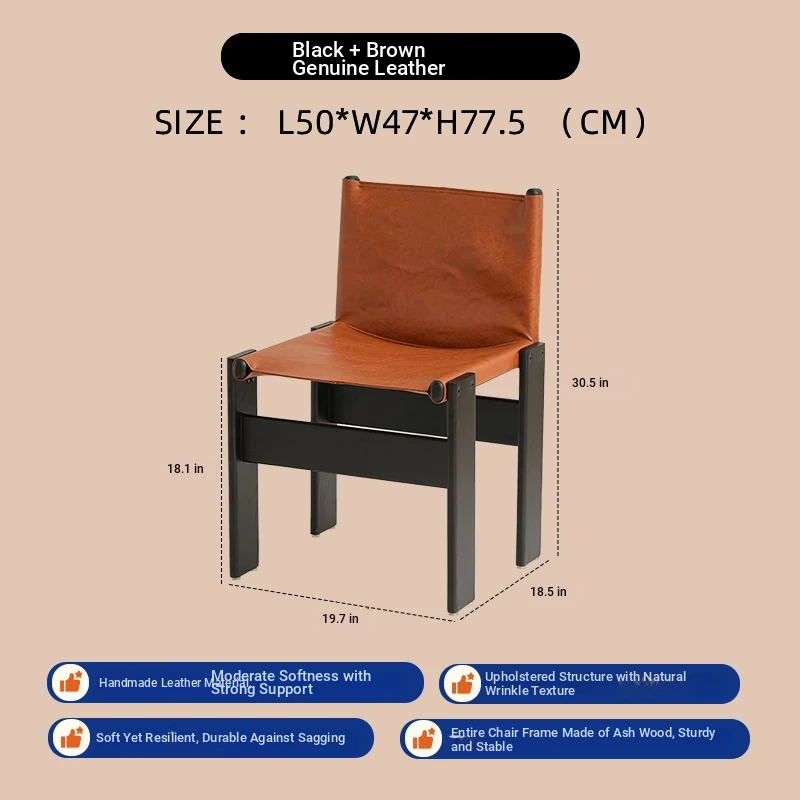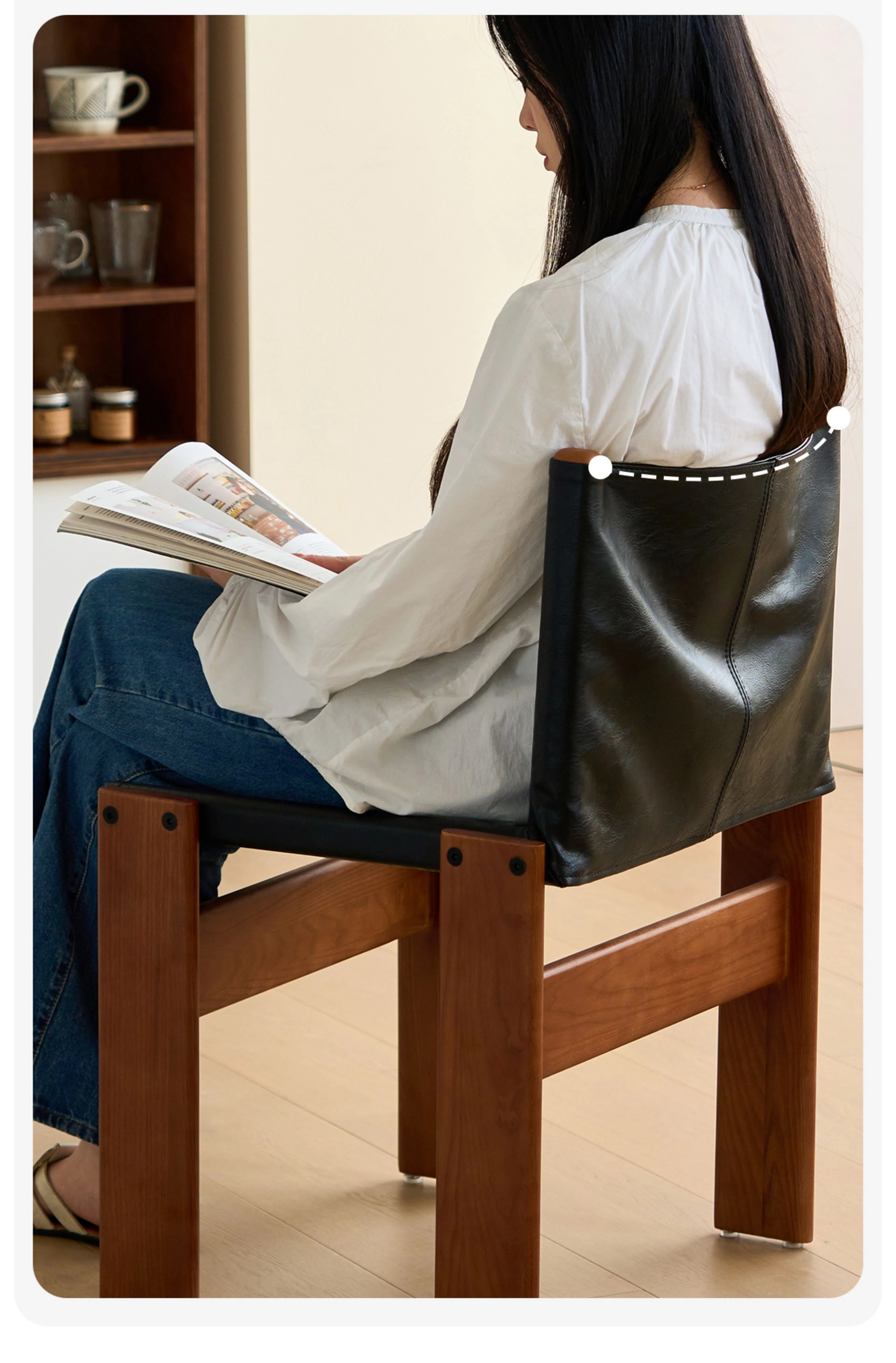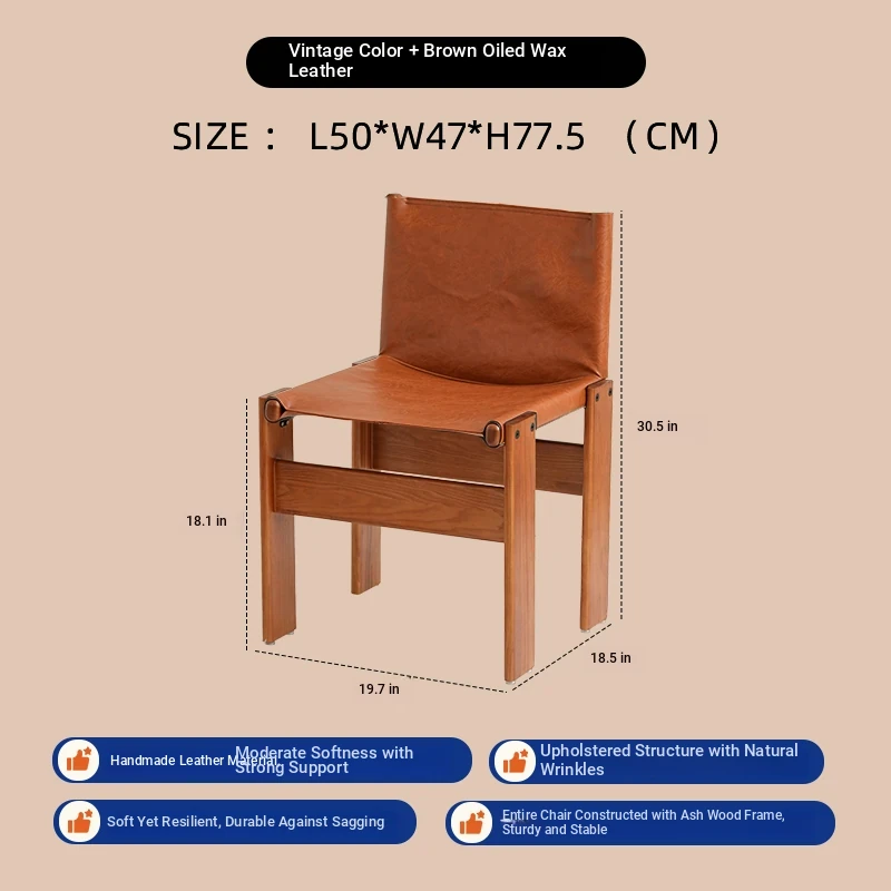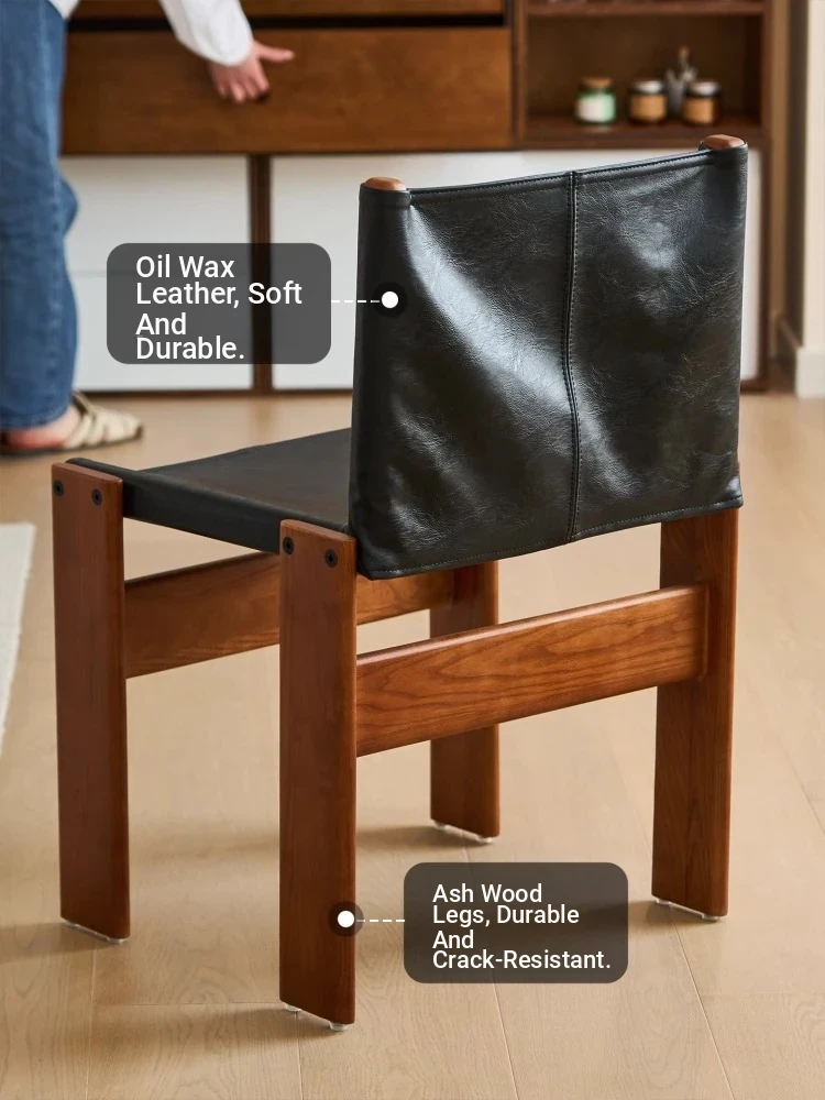 Vintage Solid Wood Dining Chair with Leather Upholstery - Zen-inspired Left-Bottom Monk Chair for Home and Restaurant, Perfect for Wabi-Sabi Aesthetics