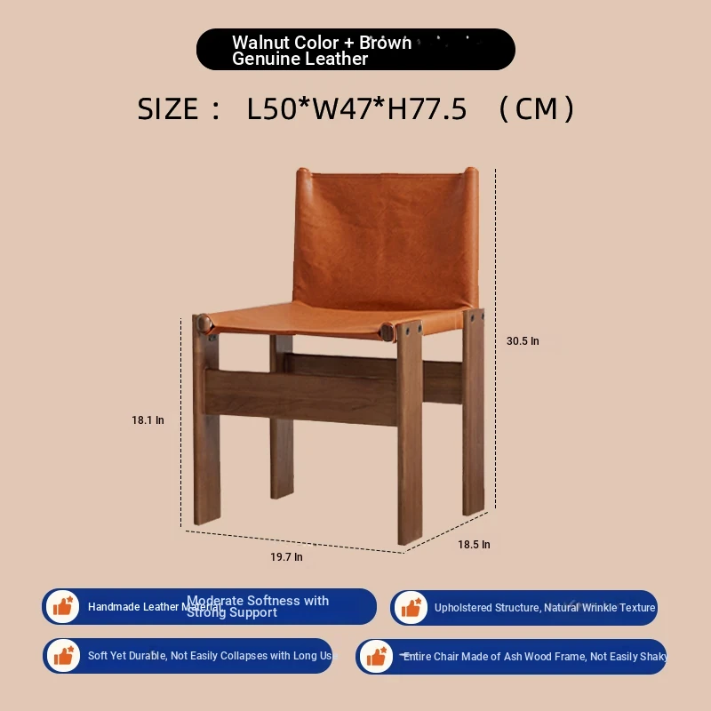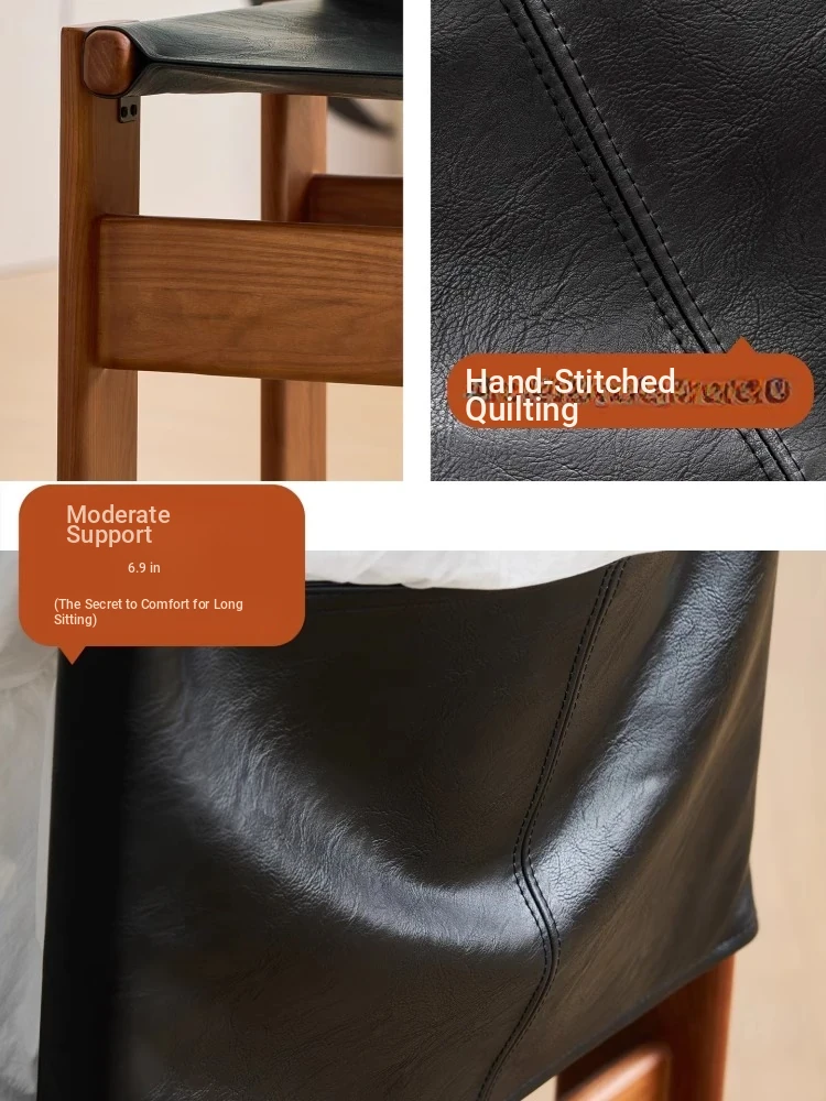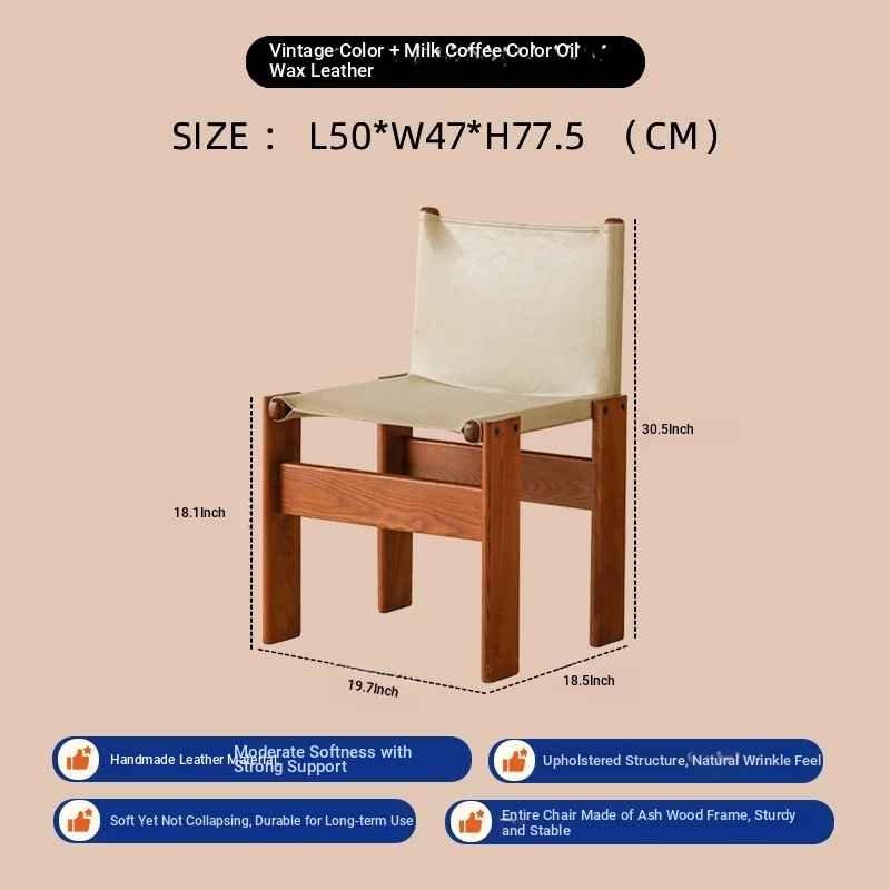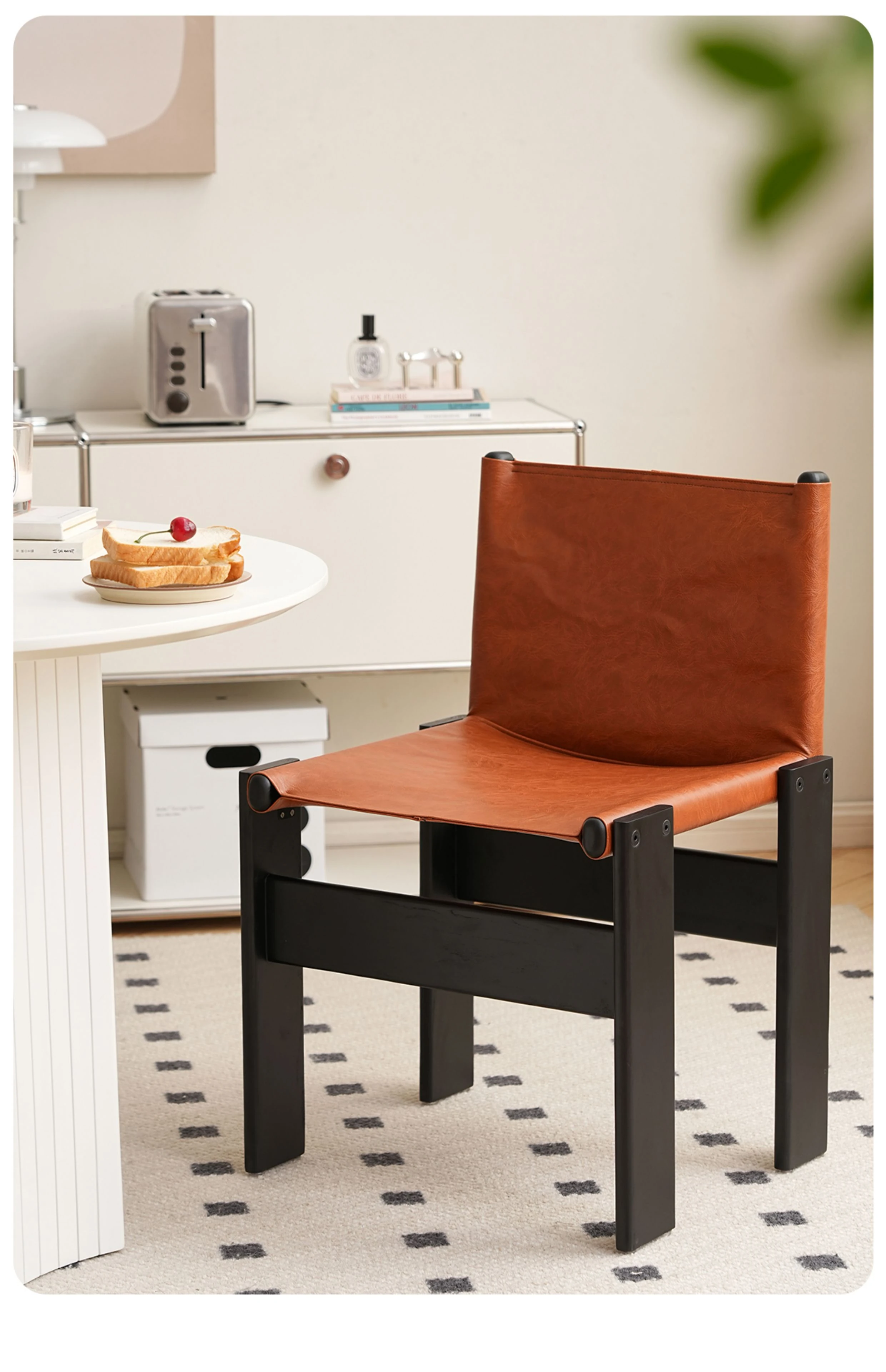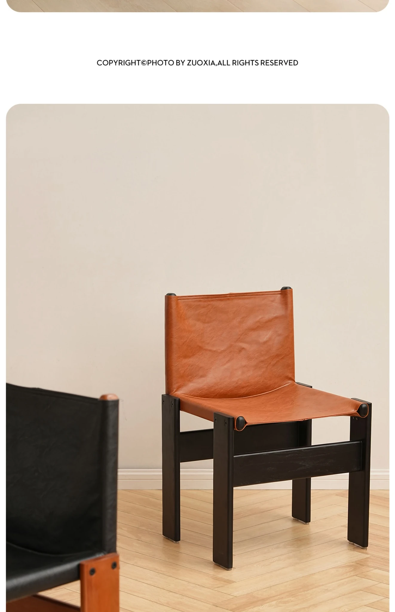 Vintage Solid Wood Dining Chair with Leather Upholstery - Zen-inspired Left-Bottom Monk Chair for Home and Restaurant, Perfect for Wabi-Sabi Aesthetics