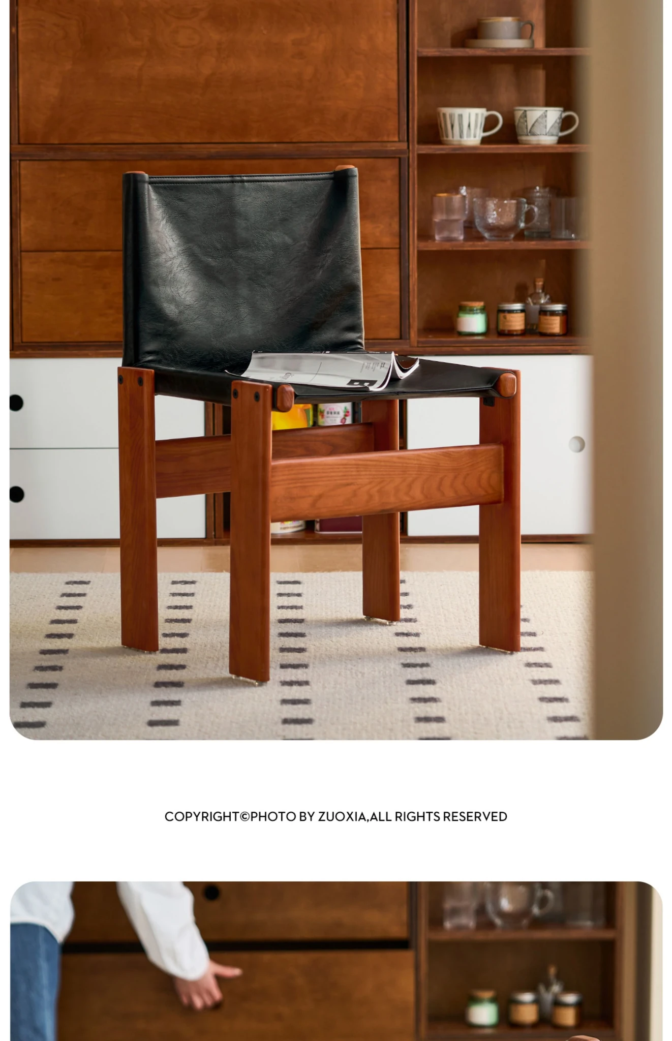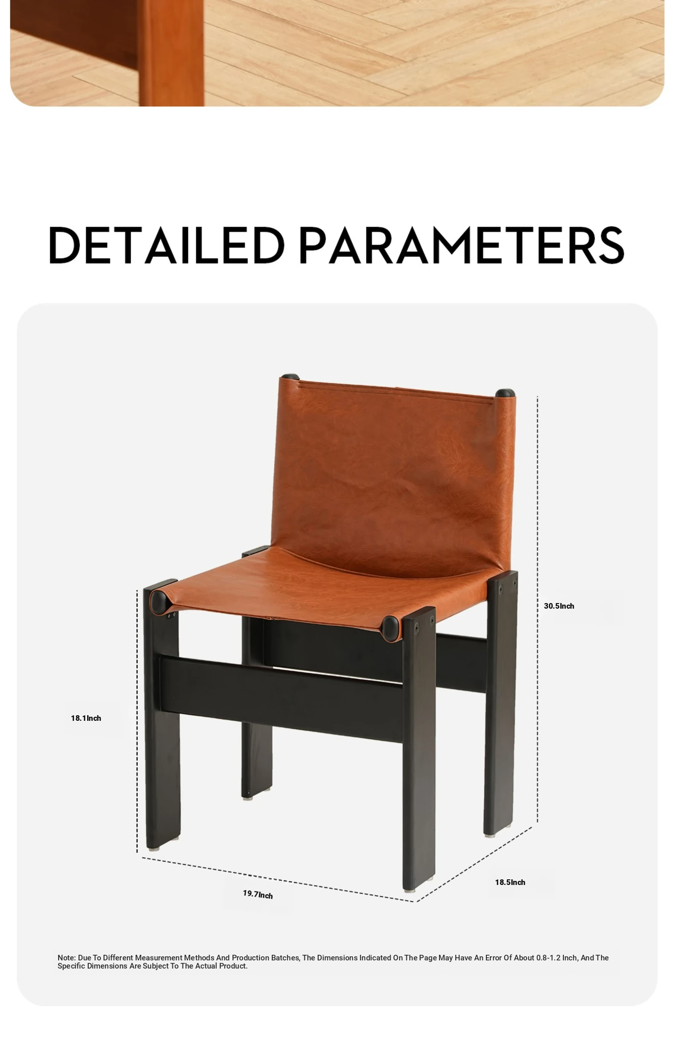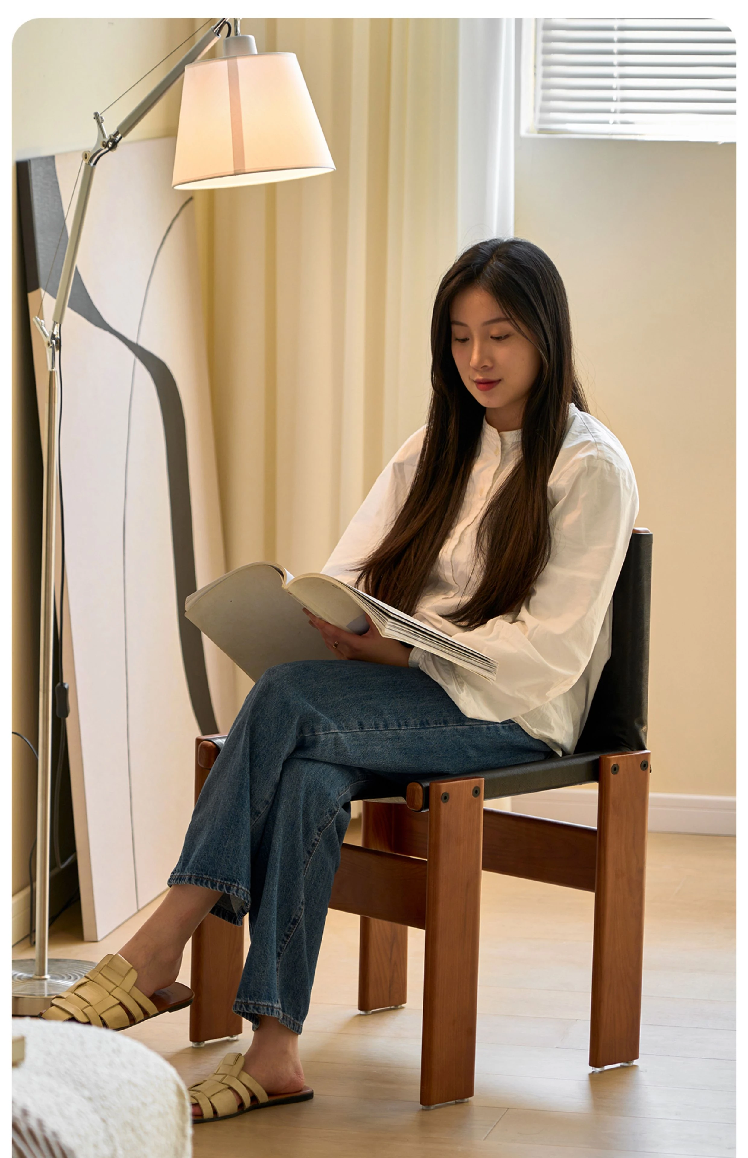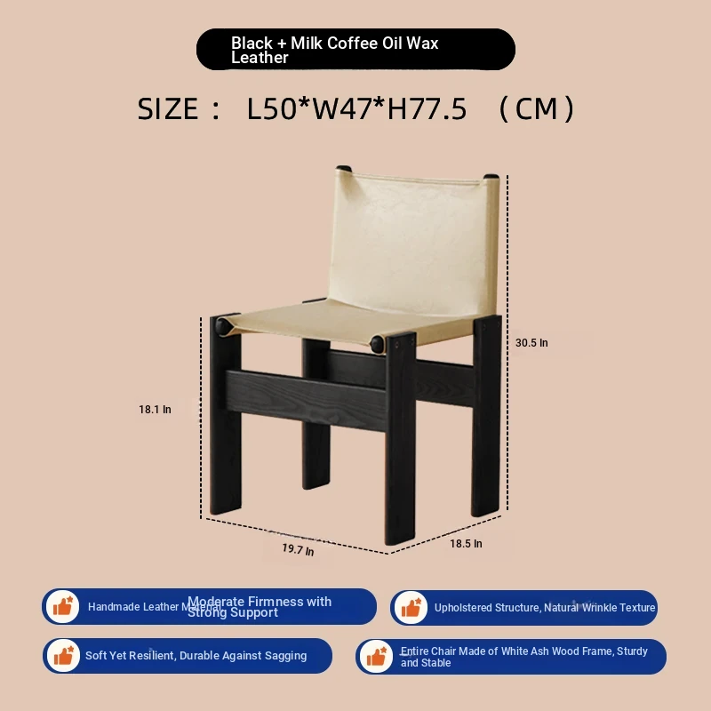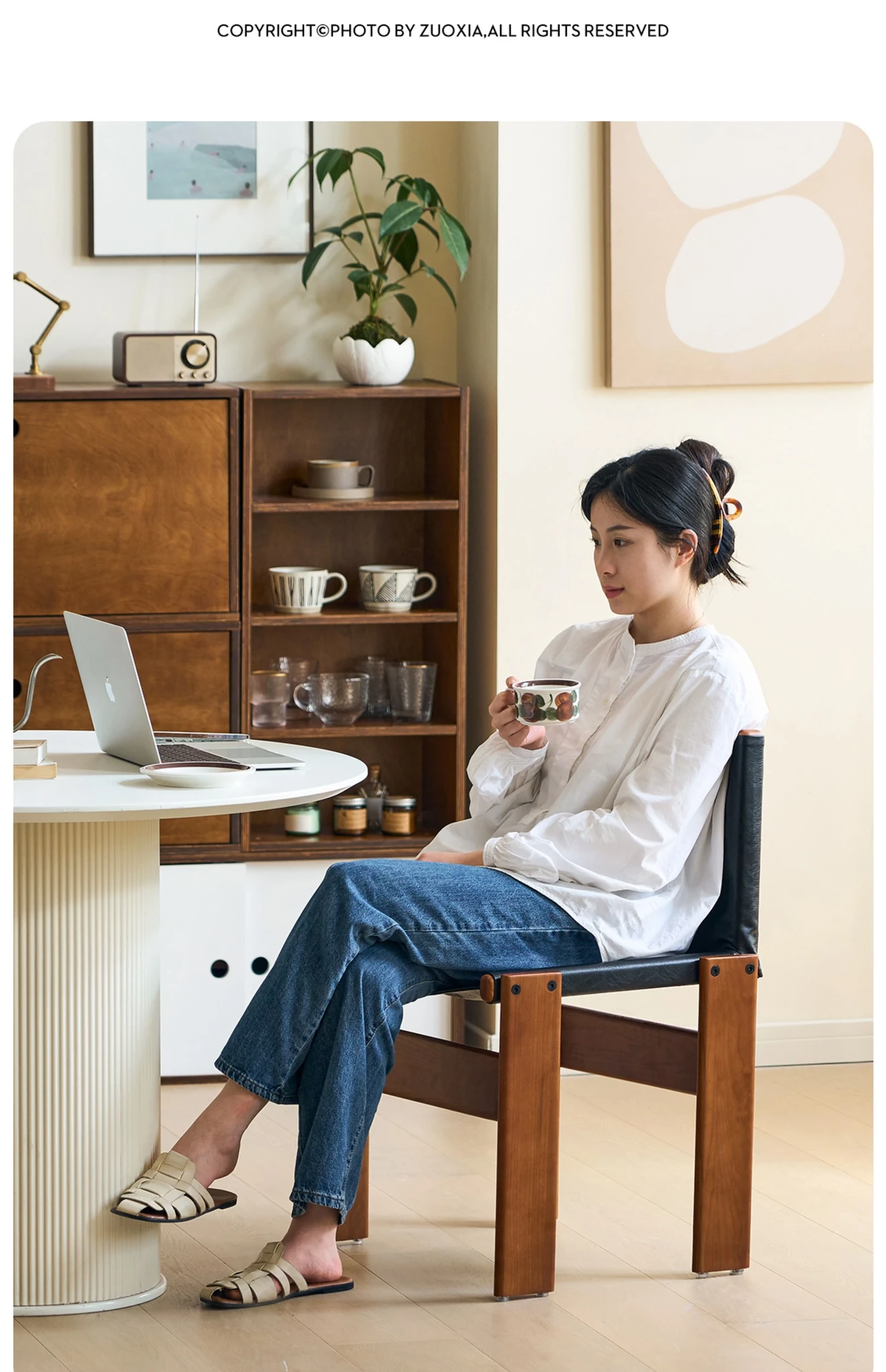 Vintage Solid Wood Dining Chair with Leather Upholstery - Zen-inspired Left-Bottom Monk Chair for Home and Restaurant, Perfect for Wabi-Sabi Aesthetics