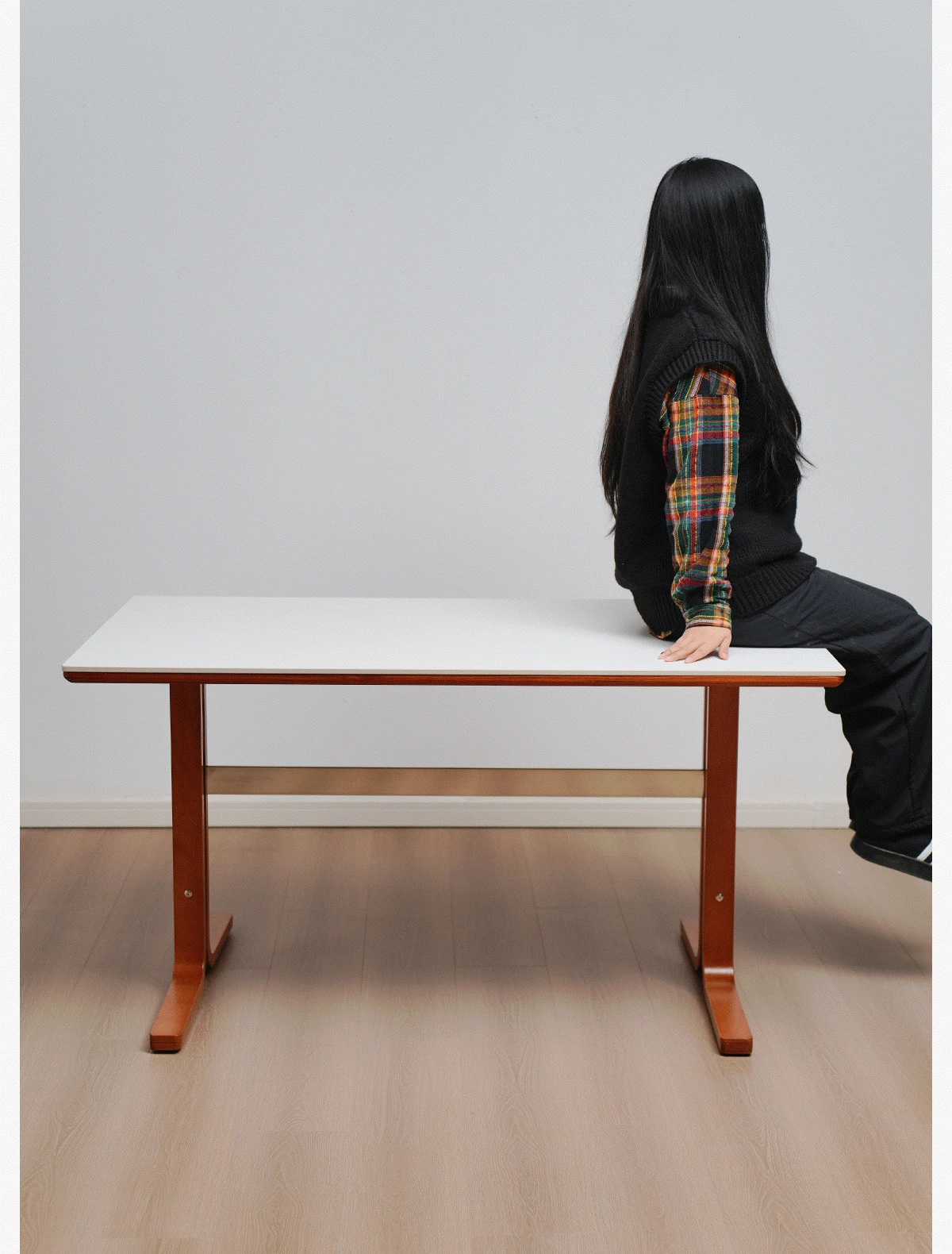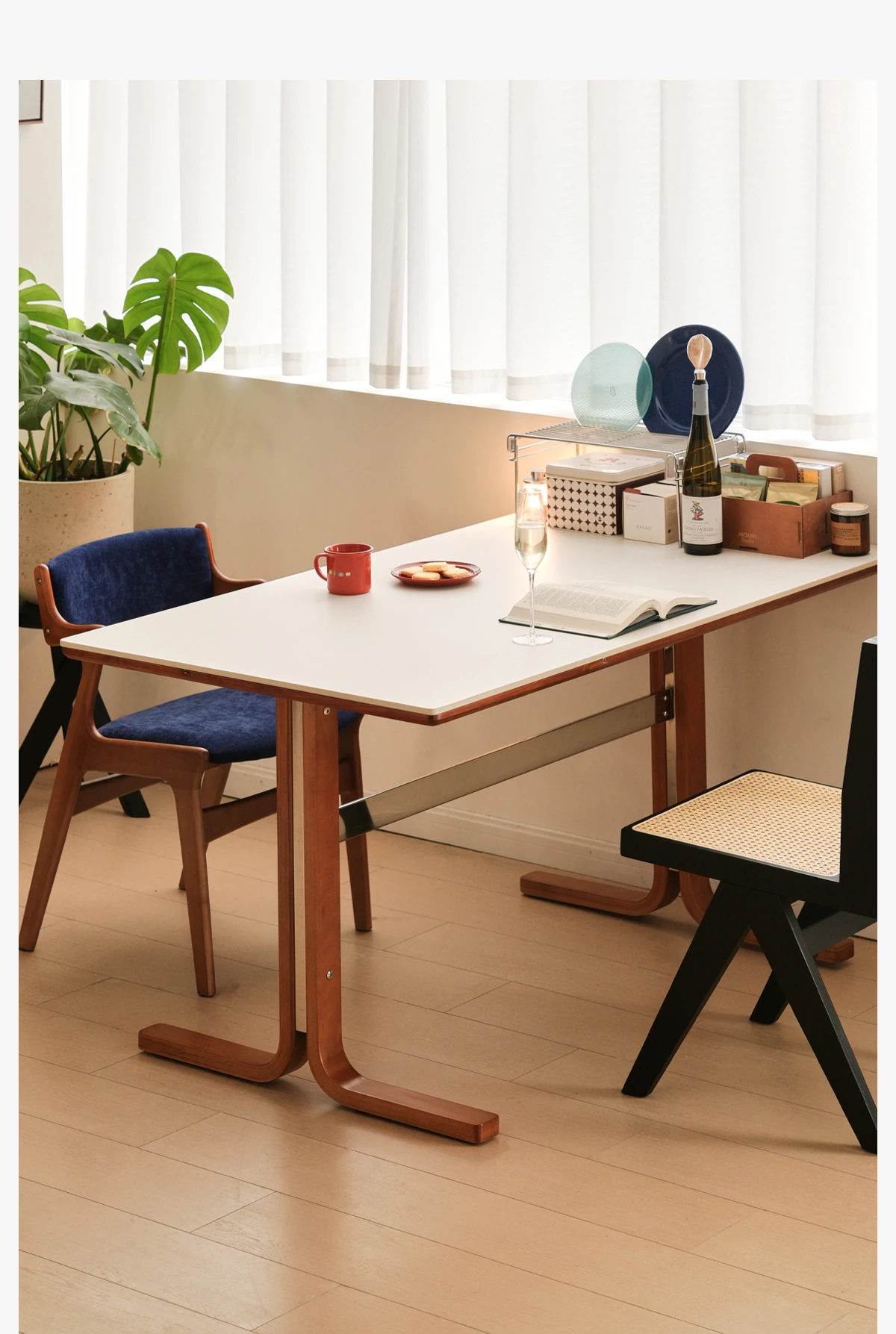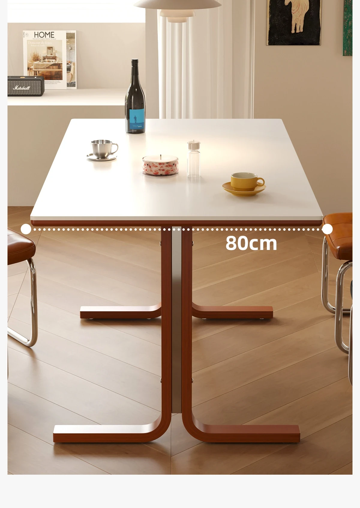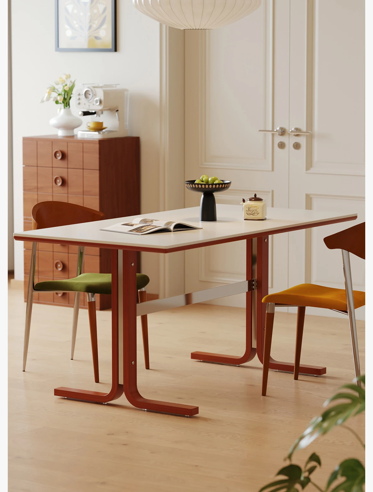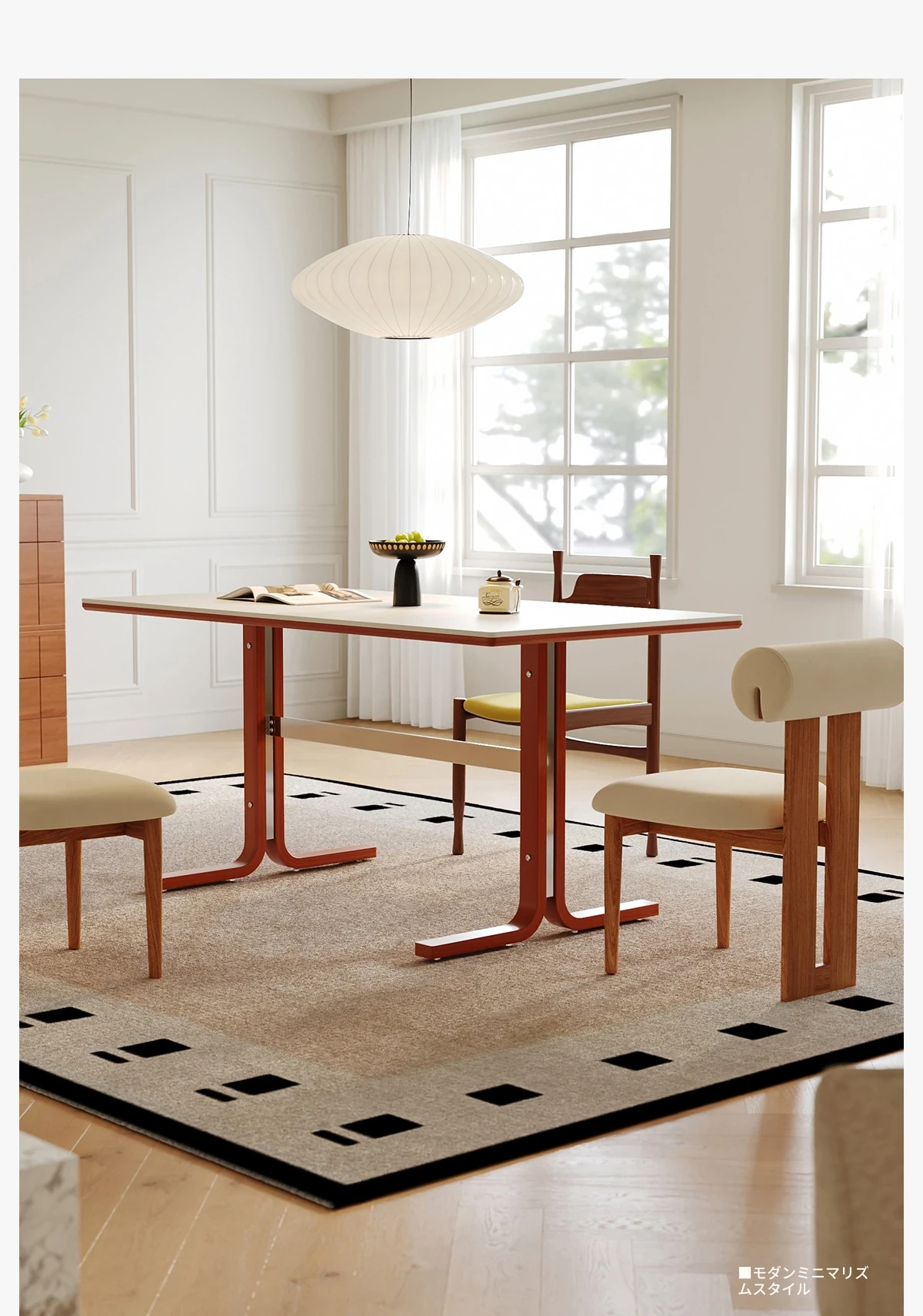 左下築索のヴィンテージスタイル長方形テーブル、2025年新作!高級感溢れる白い天然木製ダイニングテーブル。家族や友人との楽しい食卓を演出します。