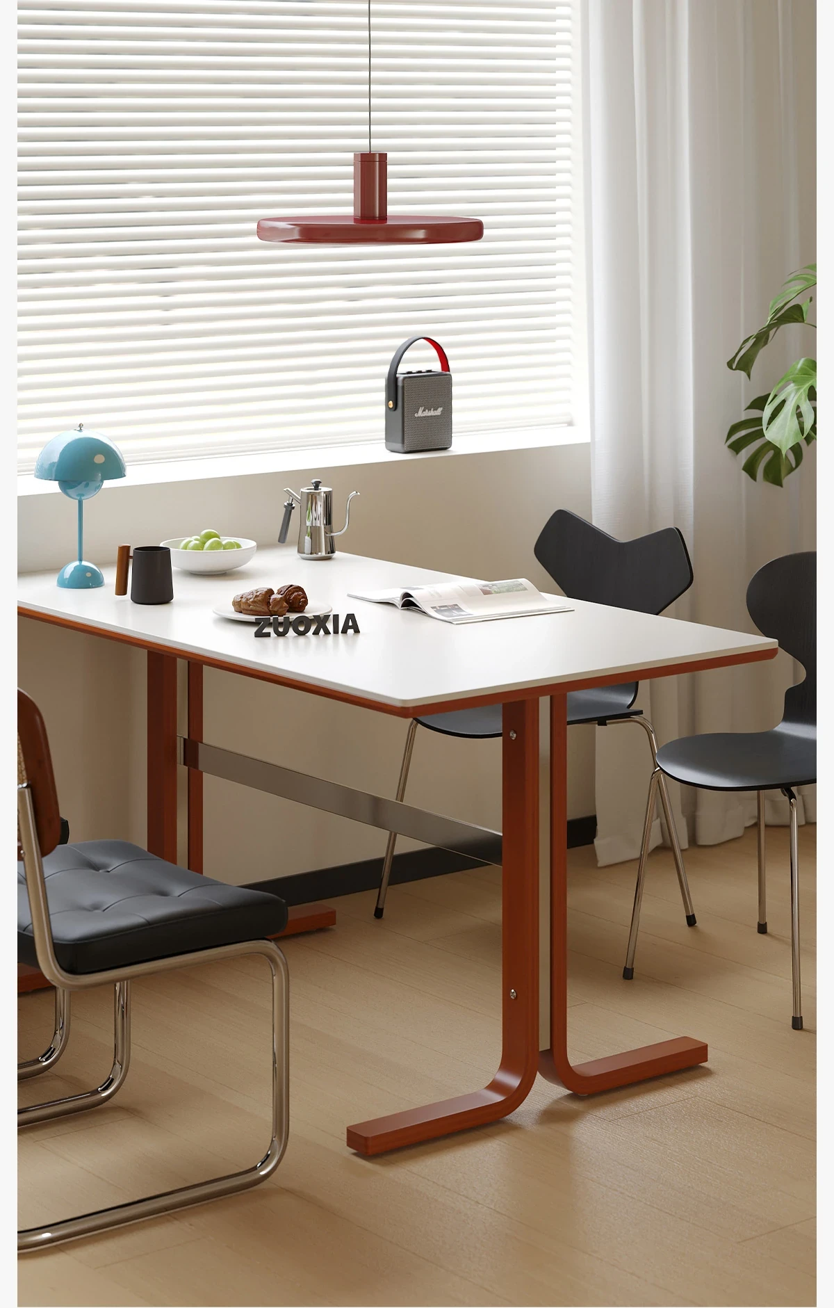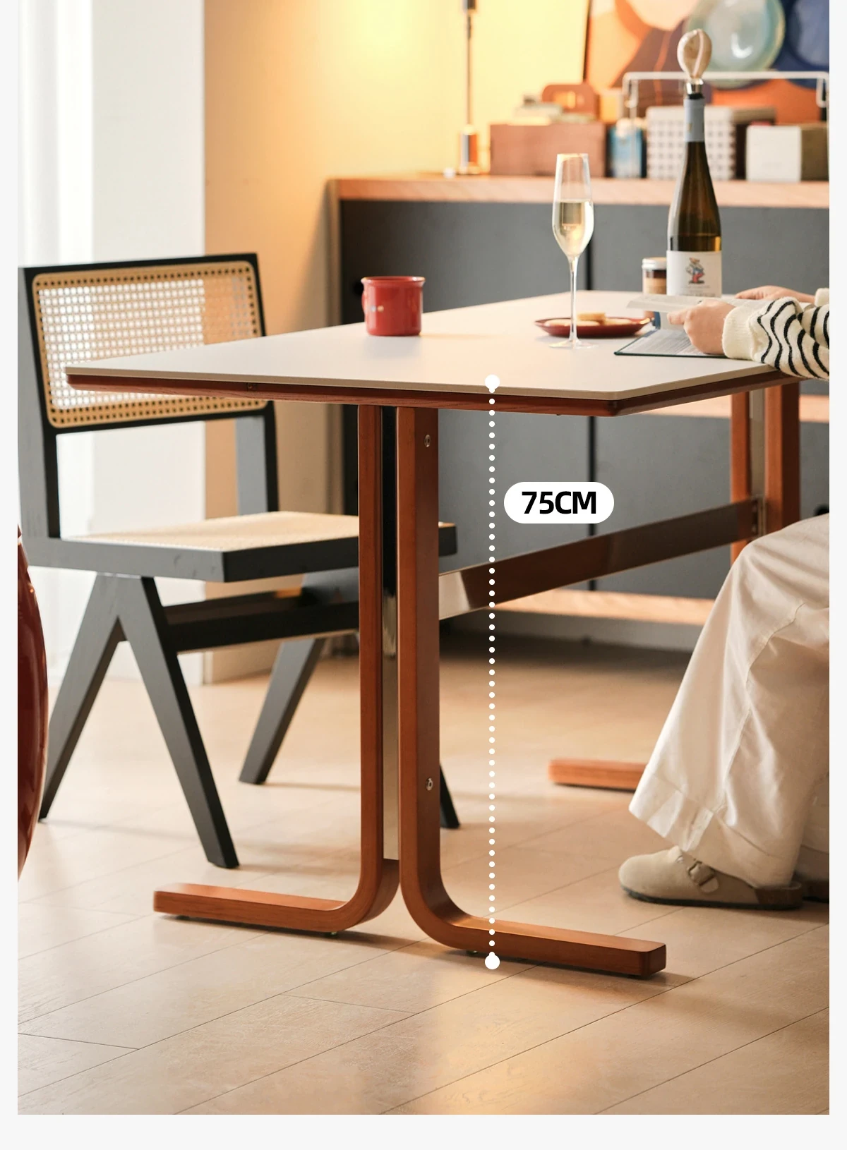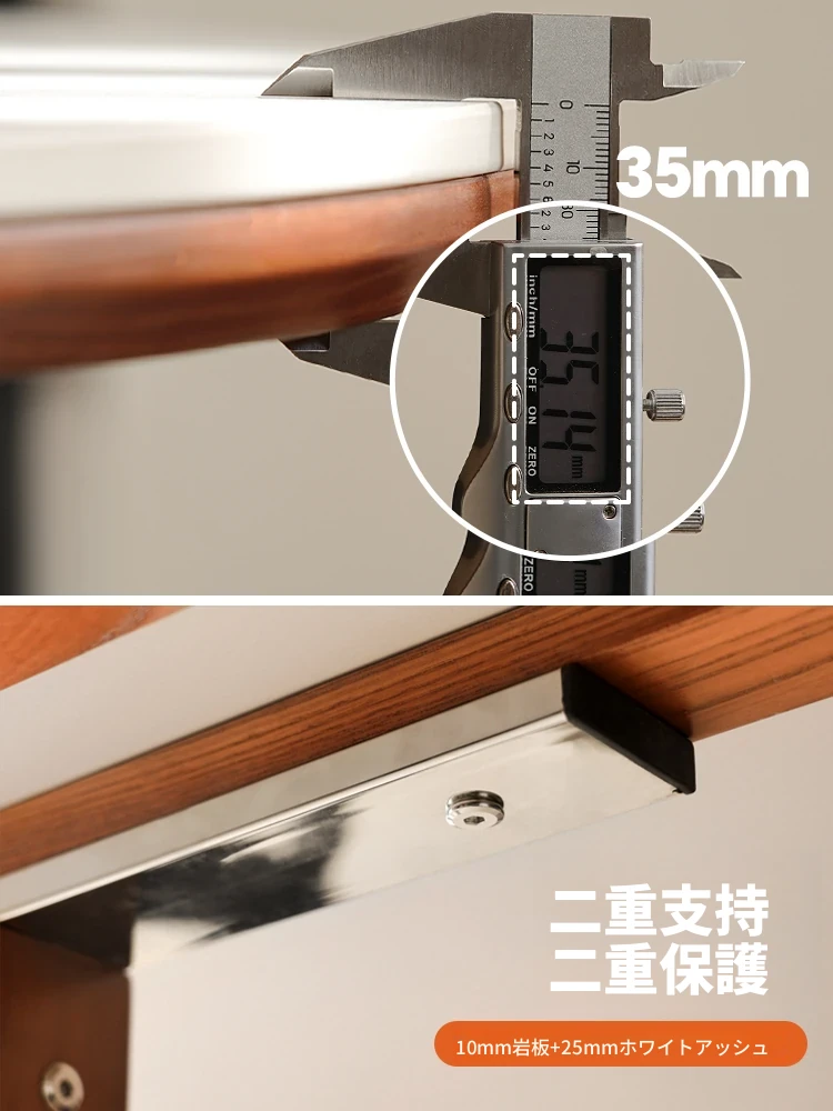 【無垢材の支え板+抗菌岩板】140CM白色ダイニングテーブル