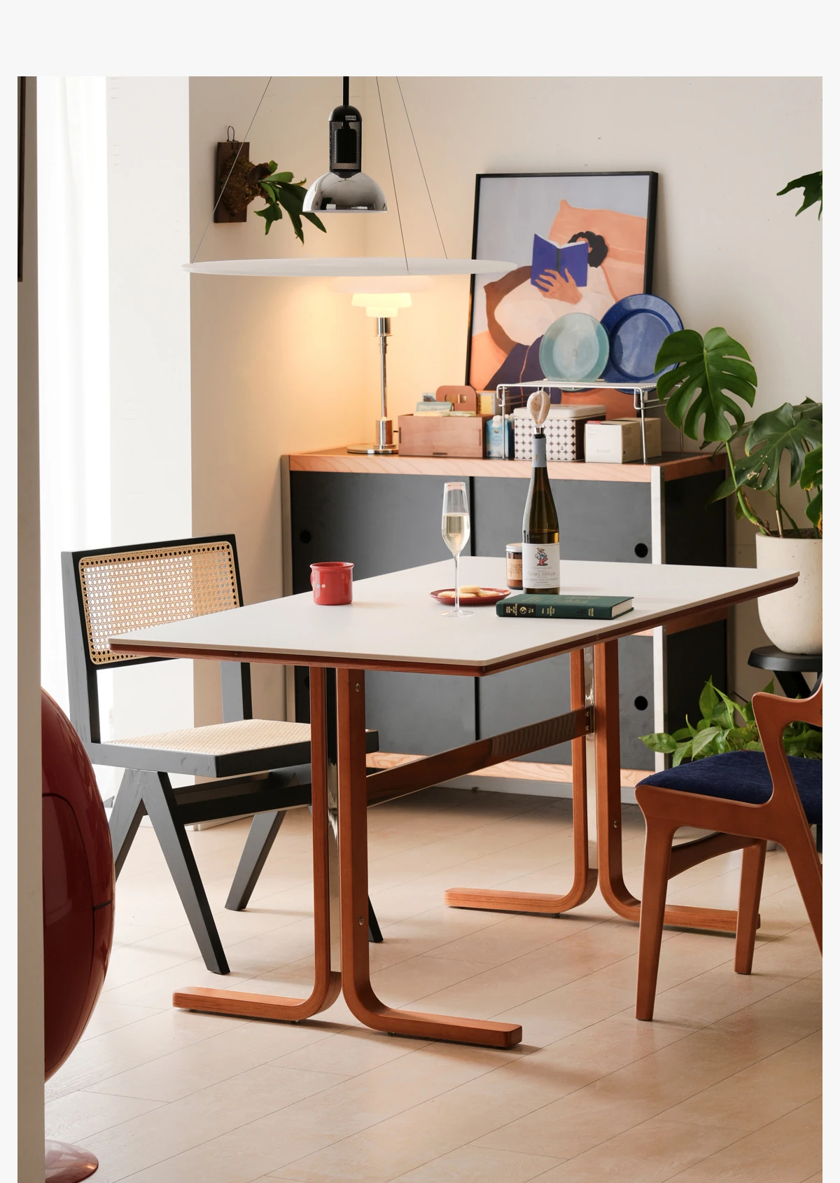 【無垢材の支え板+抗菌岩板】160CM白色ダイニングテーブル+アンディチェア*4
