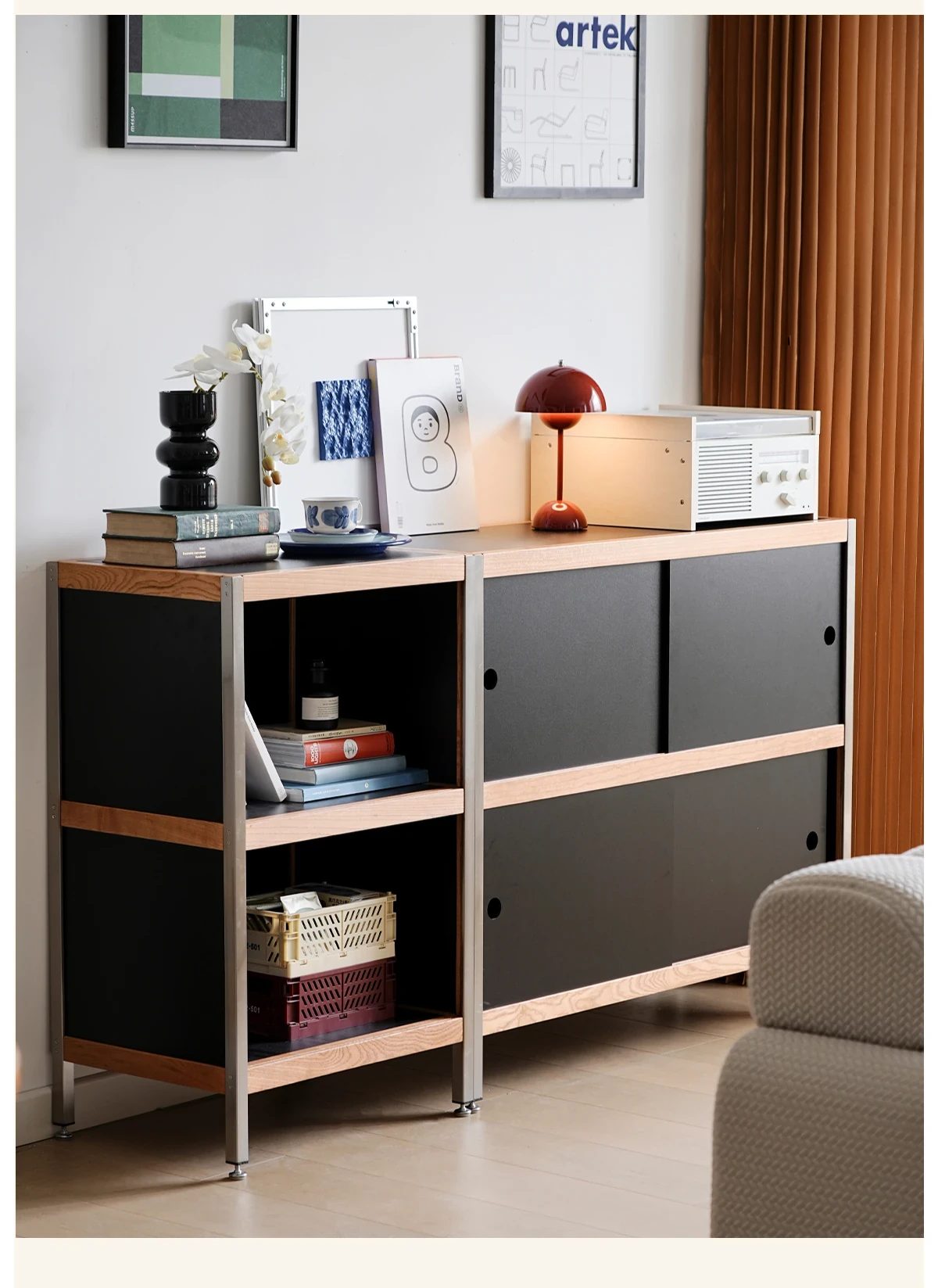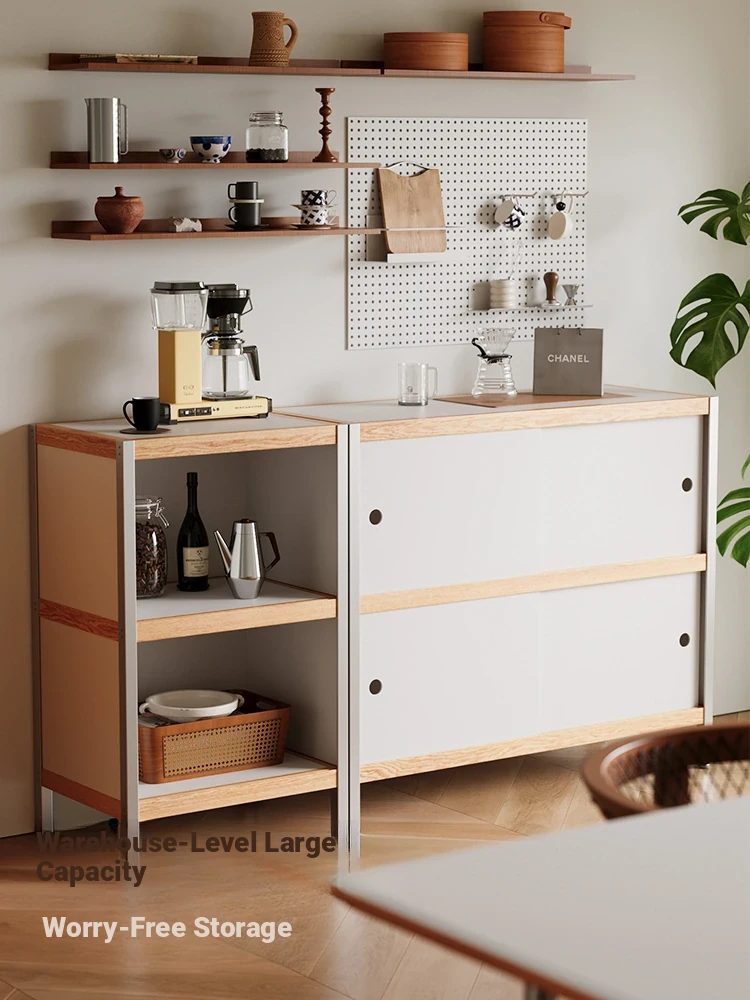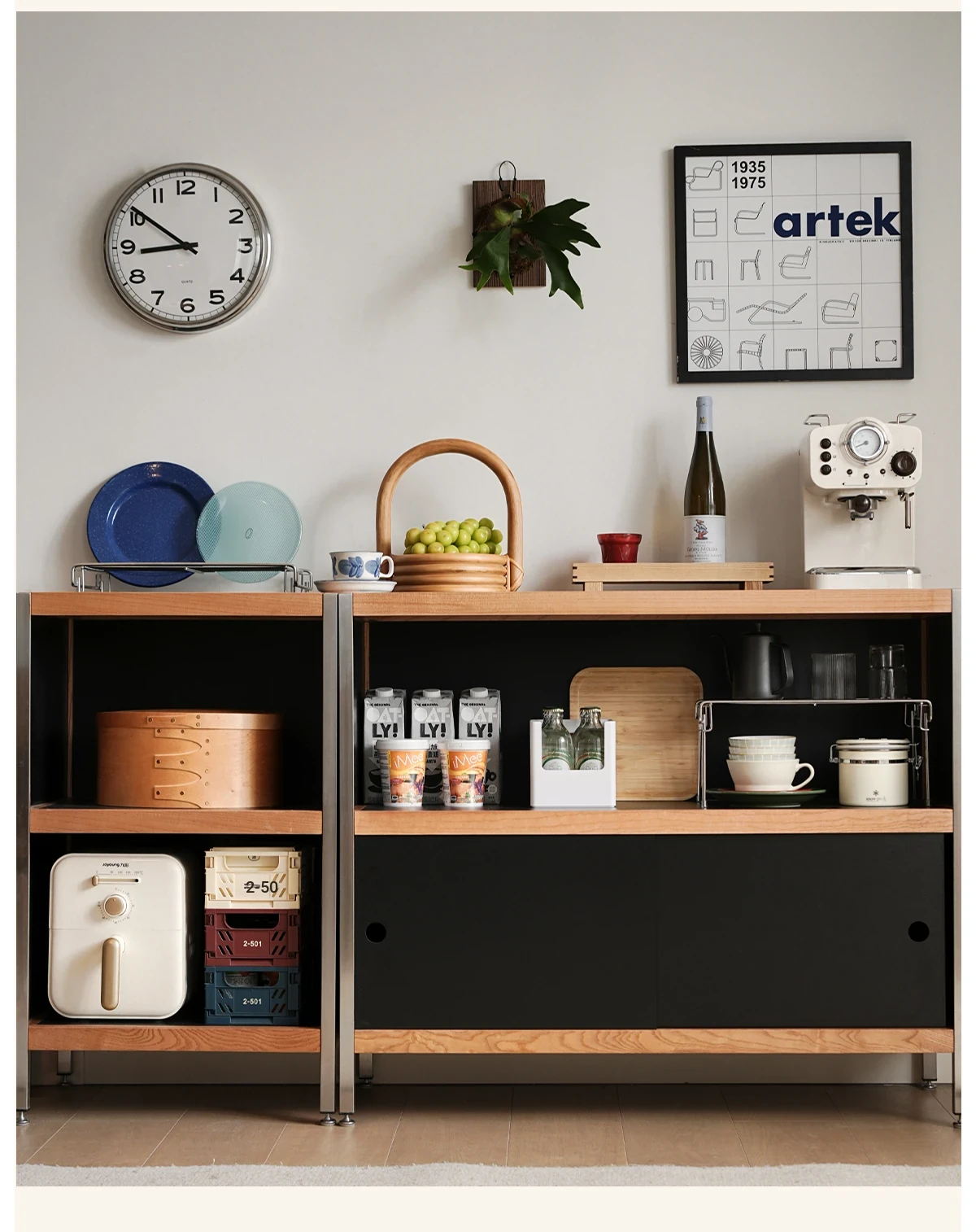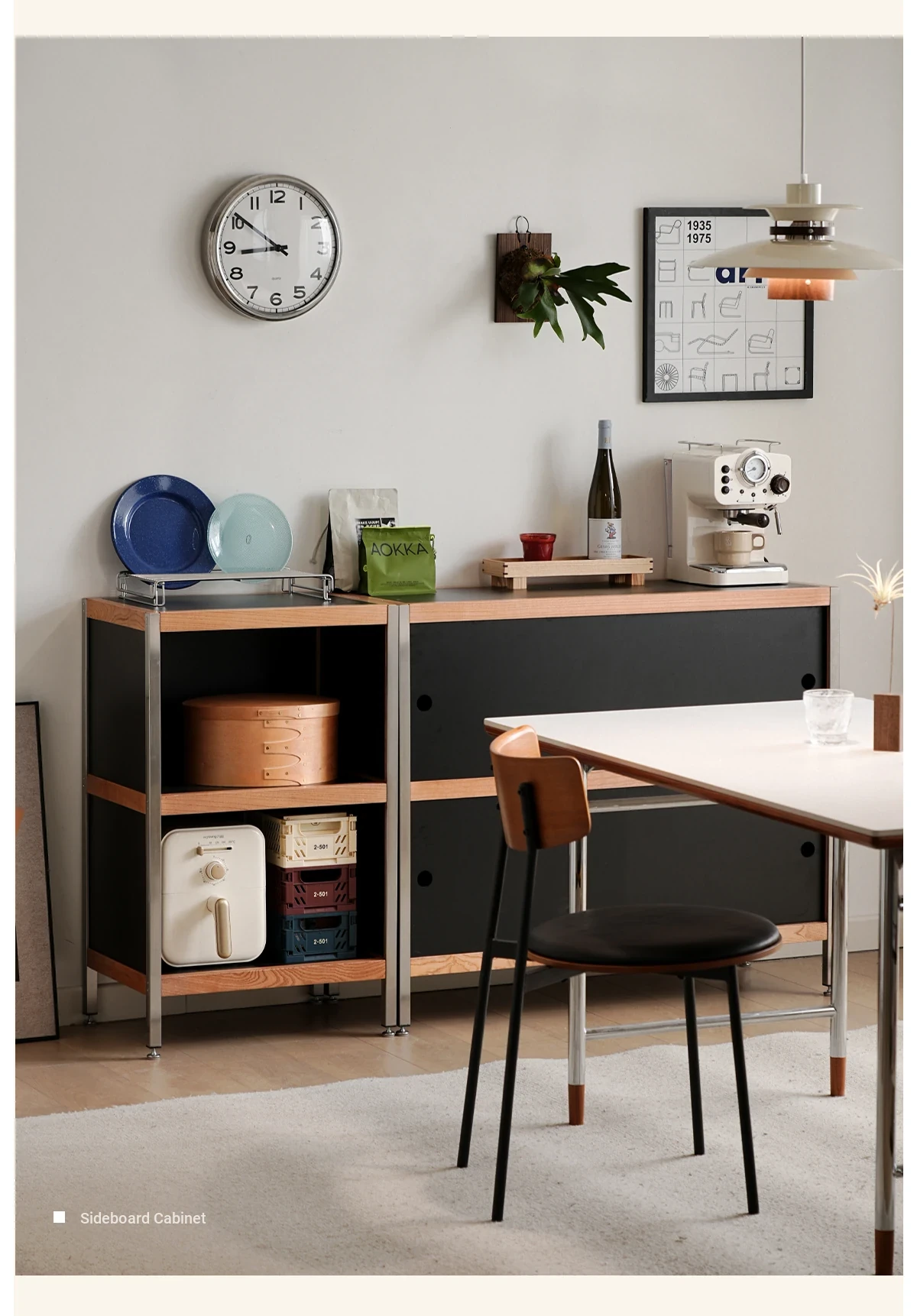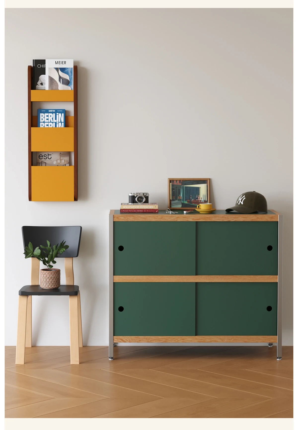 Vintage Solid Wood Sideboard - Bauhaus Style Wall-Mounted Storage Cabinet with Versatile Shelving for Home Use