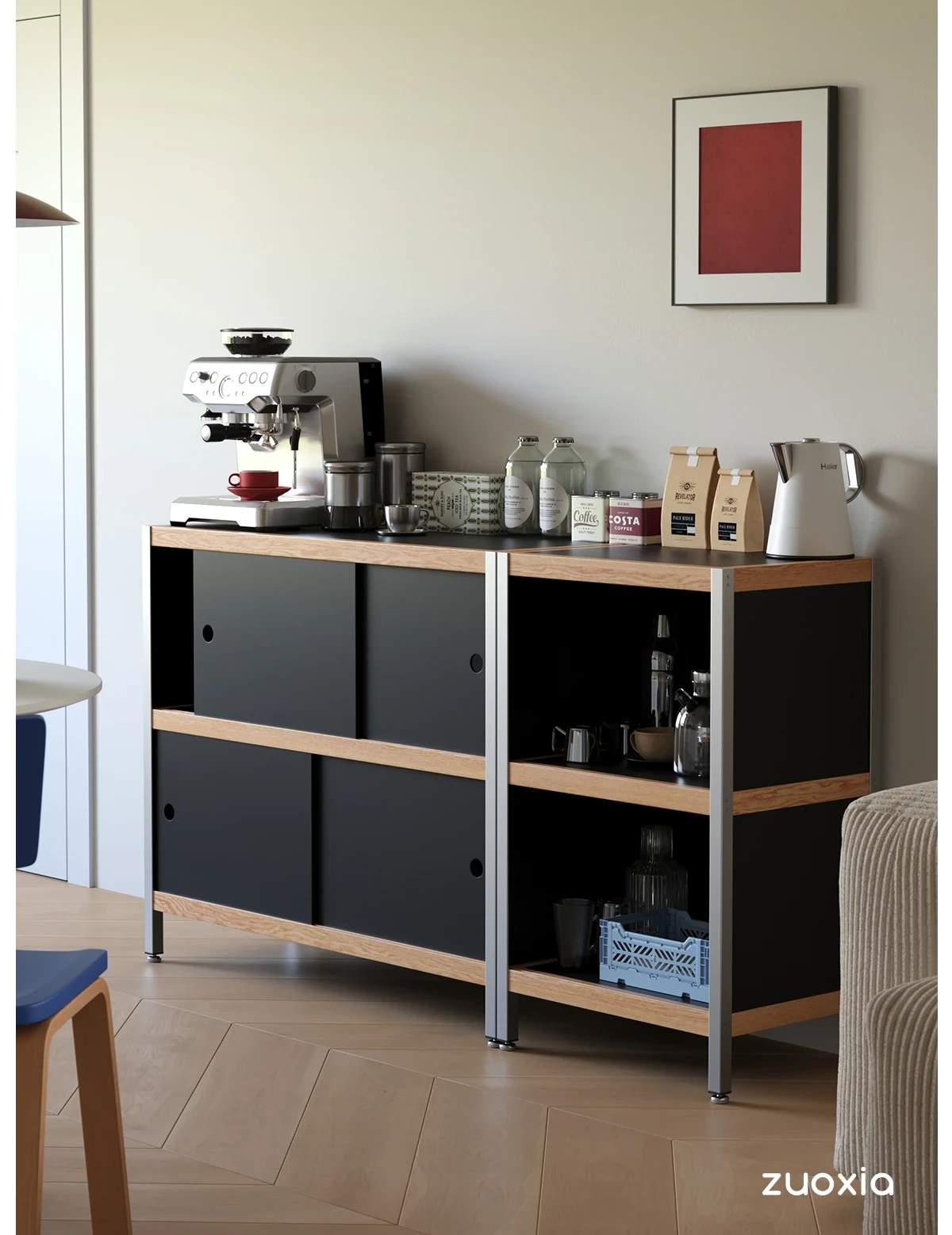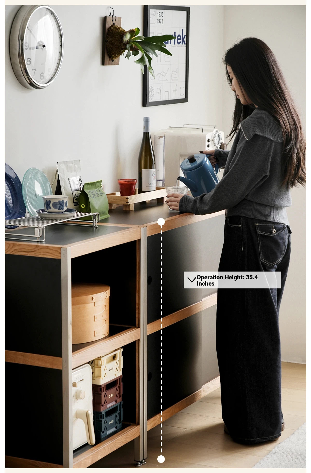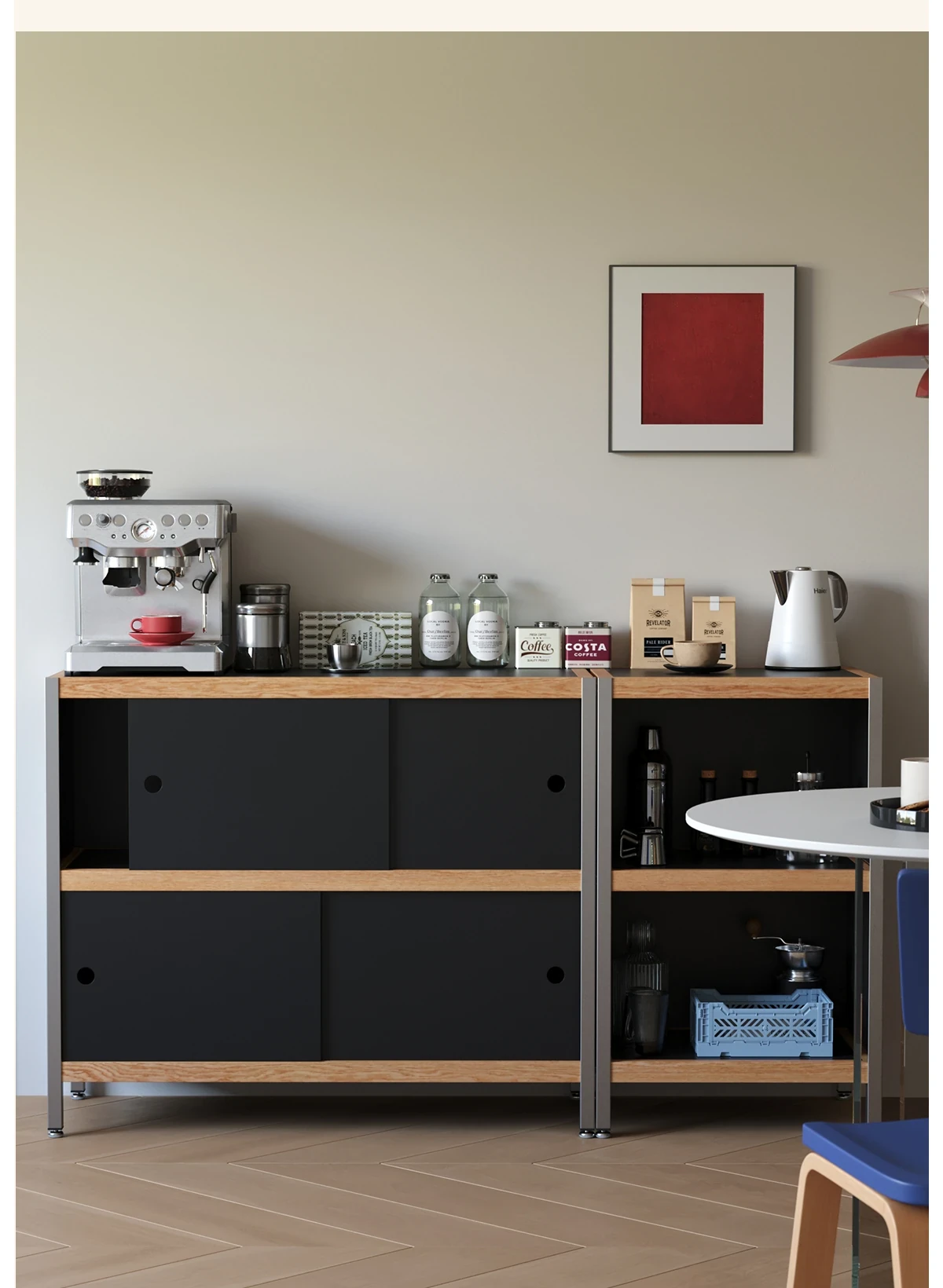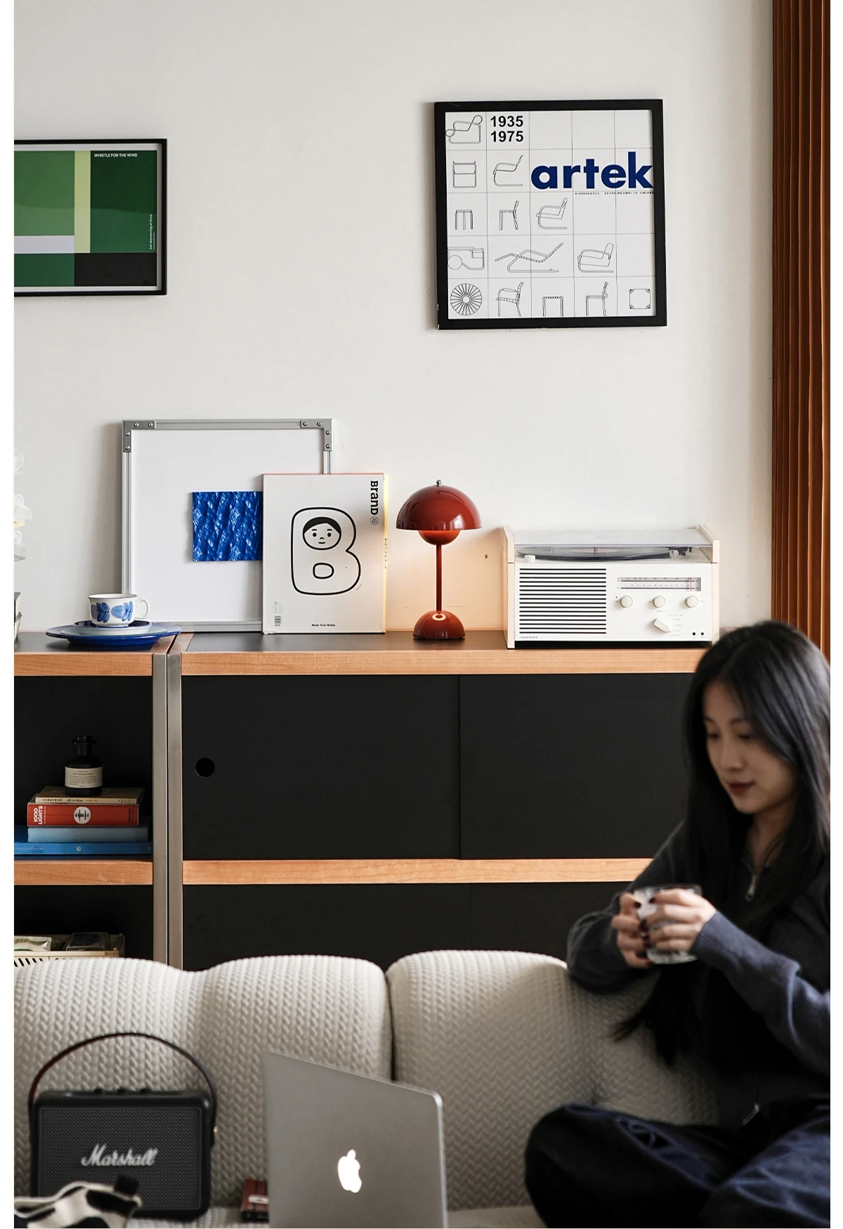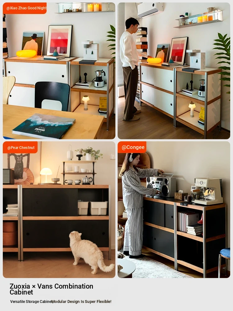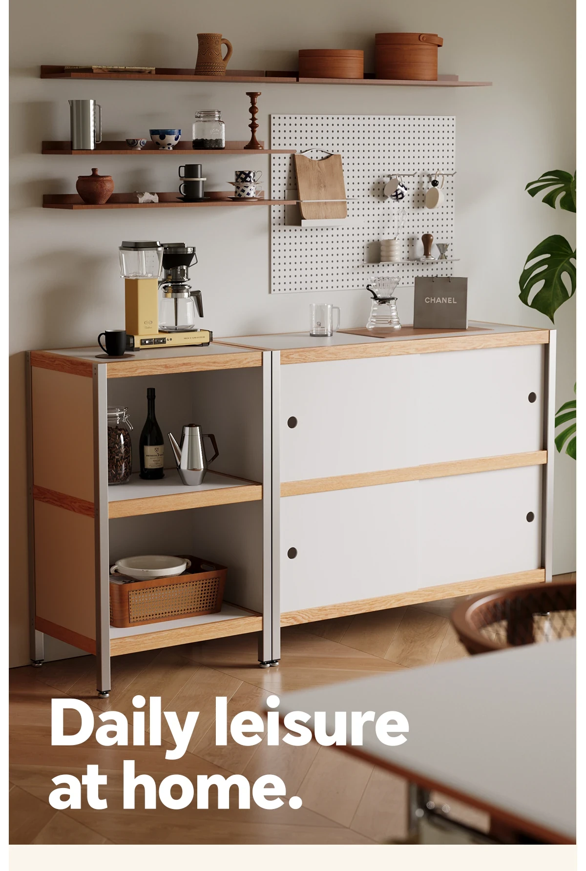Vintage Solid Wood Sideboard - Bauhaus Style Wall-Mounted Storage Cabinet with Versatile Shelving for Home Use